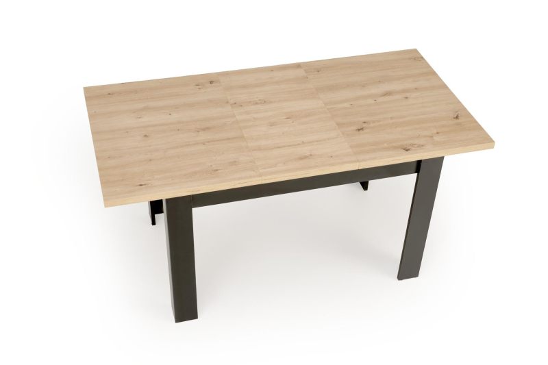 wymiary: 120-160/80/77/95 cm; stół rozkładany, materiał: płyta meblowa laminowana, kolor: blat - dąb artisan, nogi - czarny