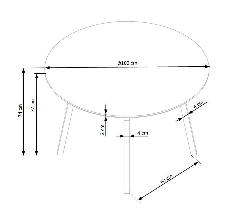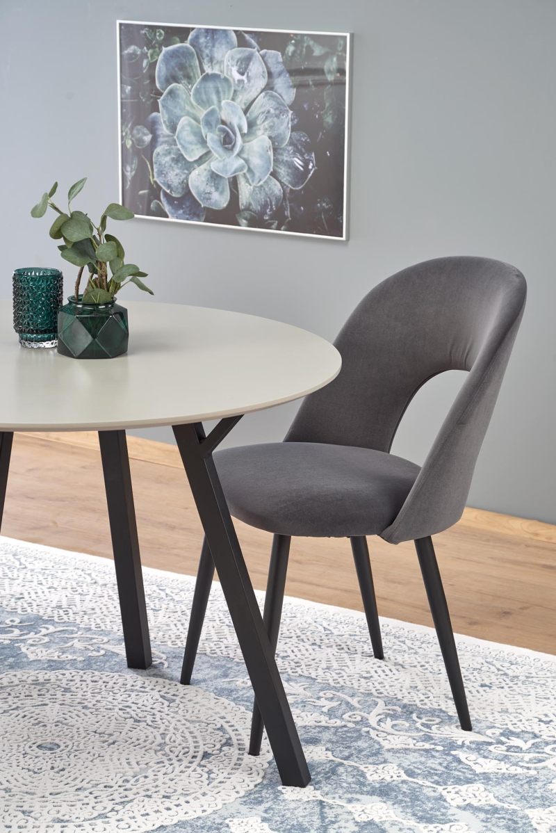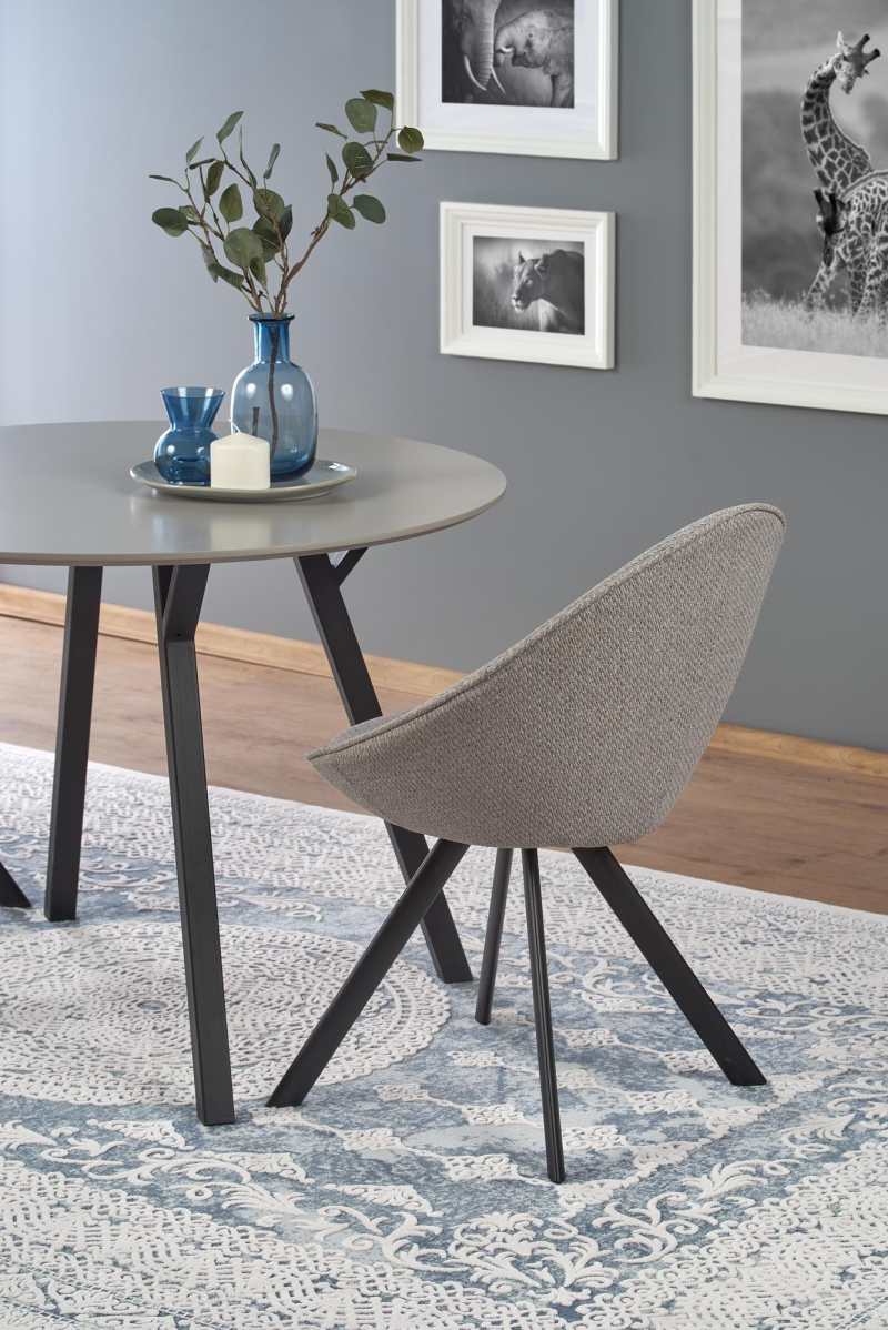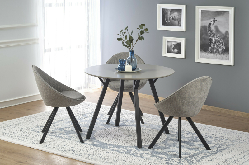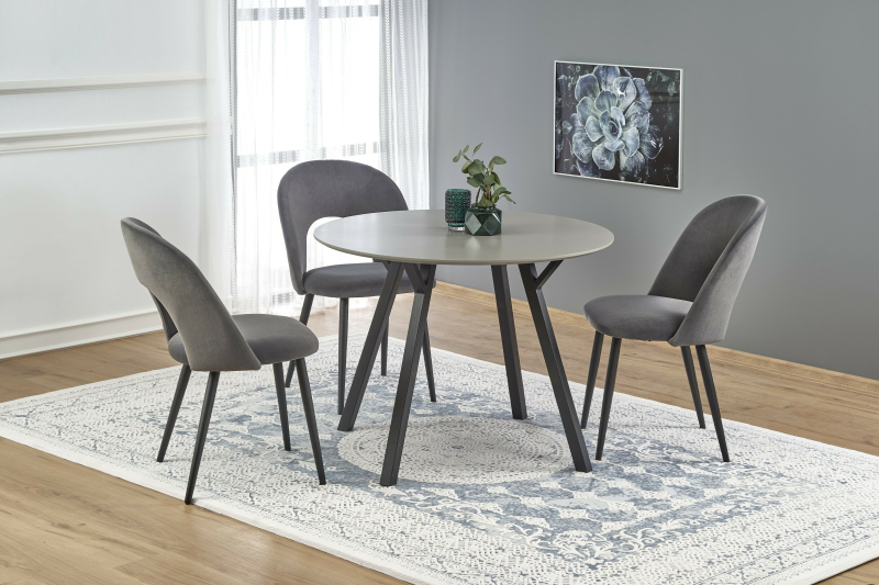 wymiary: o100/74 cm, materiał: MDF lakierowany / stal malowana proszkowo, kolor: blat - jasny popiel, nogi - czarny