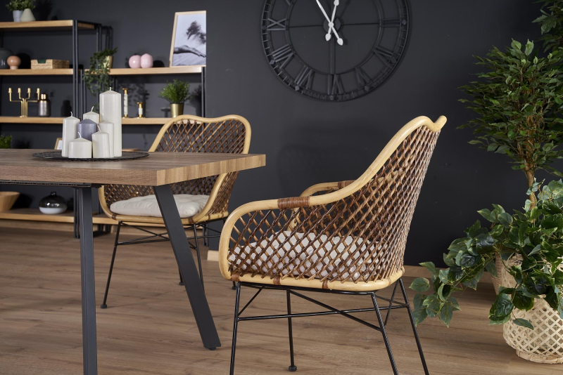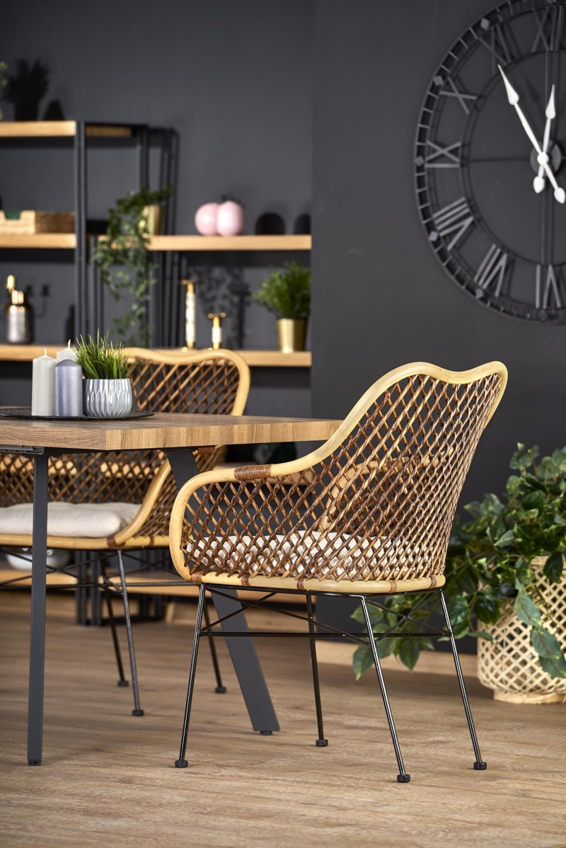 LANIPA ława czarny / rattan naturalny Stolik LANIPA – Naturalny Akcent w Twoim Wnętrzu Przedstawiamy stolik LANIPA, który idealnie łączy w sobie urok naturalnych materiałów z nowoczesnym, industrialnym designem. Ten wyjątkowy mebel będzie doskonałym uzupełnieniem salonu, sypialni, a nawet tarasu, wprowadzając do każdego pomieszczenia ciepłą i stylową atmosferę. Kluczowe cechy produktu: Wymiary: Stolik o średnicy 50 cm i wysokości 55 cm jest idealny jako stolik kawowy, pomocniczy obok sofy, czy szafka nocna. Jego kompaktowe rozmiary pozwalają na łatwe wkomponowanie w mniejsze i większe przestrzenie. Materiały wysokiej jakości: Blat i obręcz: Wykonane z naturalnego rattanu, który nadaje stolikowi lekkości i egzotycznego charakteru. Rattanowe wykończenie w naturalnym kolorze to kwintesencja stylu boho i naturalnego designu. Podstawa: Stabilna konstrukcja ze stali malowanej proszkowo na elegancki czarny kolor. Solidna metalowa rama gwarantuje trwałość i stabilność, a jednocześnie stanowi nowoczesny kontrast dla naturalnego rattanu. Design: Połączenie jasnego, naturalnego rattanu z głęboką czernią metalowej podstawy tworzy stylowy i ponadczasowy wygląd. Ażurowy wzór rattanu dodaje lekkości i unikalności, sprawiając, że stolik LANIPA jest nie tylko praktycznym meblem, ale i dekoracyjnym elementem wnętrza. Wszechstronne zastosowanie: Idealny do serwowania kawy, eksponowania roślin doniczkowych, odkładania książek czy jako podstawa pod lampę. Łatwy montaż: Stolik przeznaczony jest do samodzielnego montażu. Dołączona do przesyłki instrukcja krok po kroku poprowadzi Cię przez proces składania. Gwarancja: Na produkt udzielana jest 24-miesięczna gwarancja, co świadczy o jego wysokiej jakości i trwałości. Stolik LANIPA to doskonały wybór dla osób ceniących sobie unikalny design, naturalne materiały i funkcjonalność. Wprowadź do swojego wnętrza odrobinę egzotyki i nowoczesności z stolikiem LANIPA! wymiary: 50/55 cm, materiał: rattan naturalny / stal malowana proszkowo, kolor: naturalny - czarny