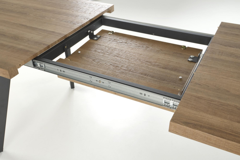 INFERNO stół rozkładany dąb naturalny - czarny Stół rozkładany INFERNO to idealne połączenie nowoczesnego designu z funkcjonalnością, które z pewnością wzbogaci Twoje wnętrze. Wykonany z wysokiej jakości materiałów, stół ten nie tylko prezentuje się stylowo, ale także zapewnia trwałość na lata. Jego naturalny dąb oraz stalowe nogi w odcieniu czarnym harmonijnie łączą się, tworząc elegancki element wyposażenia zarówno do jadalni, jak i salonu. Wymiary: rozkłada się od 100 cm do 300 cm długości, idealny do różnorodnych przestrzeni i okazji. Materiał: wytrzymały MDF pokryty okleiną naturalną dębową oraz solidne nogi wykonane ze stali malowanej proszkowo. Kolor: naturalny dąb na blacie oraz czarny na nogach, co nadaje mu nowoczesny i elegancki wygląd. Styl: minimalistyczny, który doskonale wpisze się w różne aranżacje wnętrz, od skandynawskich po industrialne. Stół INFERNO to nie tylko estetyka, ale także funkcjonalność, której potrzebujesz w codziennym użytkowaniu. Możliwość rozłożenia go pozwala na wygodne serwowanie większych posiłków i organizowanie spotkań rodzinnych czy towarzyskich. Jego designerskie wykończenie sprawia, że stanie się centralnym punktem każdej przestrzeni, zachwycając gości i domowników. Gwarancja producenta: 24 miesiące. Samodzielny montaż: stół dostarczany jest z instrukcją, co ułatwia jego szybkie i bezproblemowe złożenie. Dostawa: Oferujemy płatną usługę dostawy z wniesieniem. Prosimy o zaznaczenie tej opcji podczas składania zamówienia, aby cieszyć się komfortem bez dodatkowego wysiłku. Koszt usługi zostanie doliczony do zamówienia. stół rozkładany, wymiary: 100-300/100/76 cm, materiał: MDF + okleina naturalna (dębowa) / stal malowana proszkowo, kolor: blat - dąb naturalny, nogi - czarny