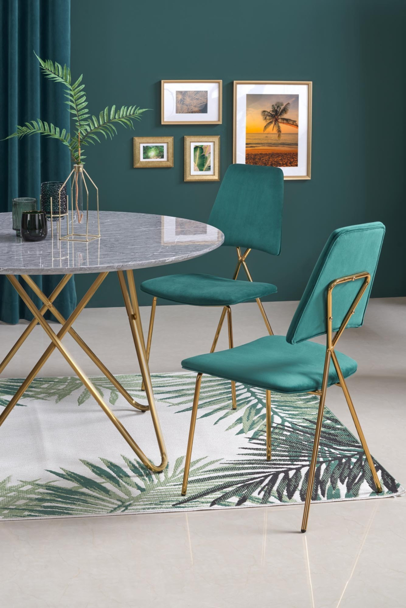HARISSA_G ława stelaż - złoty, blat - biały marmur Ława - stolik HARISSA_G to elegancki mebel, który doskonale wkomponuje się w nowoczesne wnętrza, łącząc funkcjonalność z wyrafinowanym stylem. Jego zachwycający design i wysokiej jakości materiały sprawiają, że będzie idealnym uzupełnieniem każdego pomieszczenia, zarówno w salonie, jak i na tarasie. Wymiary: Średnica 42 cm, wysokość 41 cm - idealne do niewielkich przestrzeni. Materiał: Blat wykonany z MDF okleinowanego, co gwarantuje trwałość, a jednocześnie nadaje elegancki wygląd. Wykończenie: Blat w odcieniu białego marmuru z subtelnymi, szarymi żyłkami, które wprowadzą odrobinę luksusu do Twojego wnętrza. Stelaż: Złoty, malowany proszkowo - nadaje nowoczesny i stylowy charakter, jednocześnie zapewniając stabilność. Styl: Industrialny lub skandynawski - doskonale komponuje się z różnymi aranżacjami. Mebel jest nie tylko estetyczny, ale również praktyczny. Dzięki lekkiej konstrukcji łatwo go przemieszczać, co umożliwia swobodne dostosowanie aranżacji do własnych potrzeb. HARISSA_G świetnie nadaje się jako stolik kawowy, a także jako miejsce na drobne dekoracje czy napoje. Jego unikalny design przyciągnie wzrok każdego gościa! Gwarancja producenta: 24 miesiące. Samodzielny montaż: Mebel wymaga prostego montażu, instrukcja zawarta w przesyłce. wymiary: fi 42/41 cm, materiał: MDF okleinowany / stal malowana proszkowo, kolory: stelaż - złoty, blat - biały marmur