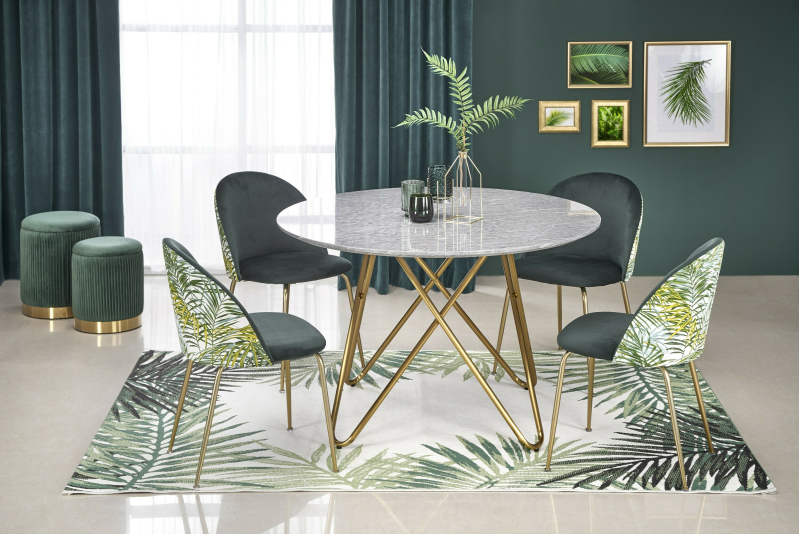 MUSCAT stół rozkładany blat - popielaty marmur, noga - jasny popiel / złoty Stół rozkładany MUSCAT to doskonałe połączenie elegancji i funkcjonalności, idealne do nowoczesnych wnętrz. Dzięki możliwości rozkładania, możesz łatwo dostosować jego rozmiar do swoich potrzeb, co czyni go idealnym rozwiązaniem na rodzinne obiady czy przyjęcia ze znajomymi. Jego wymiary, wynoszące 120-160 cm średnicy oraz wysokość 76 cm, sprawiają, że stół zmieści się w różnych przestrzeniach, zachowując jednocześnie komfort dla gości. Blat: wykonany z eleganckiej ceramiki w kolorze popielatego marmuru, który dodaje luksusowego wyglądu. Noga: stylowa konstrukcja w odcieniu jasnego popielu z elementami złotymi, co wprowadza odrobinę glamour do wnętrza. Materiał: połączenie MDF lakierowanego, stal chromowana i polipropylen, co zapewnia trwałość i łatwość w utrzymaniu. Ten stół jest nie tylko estetyczny, ale także praktyczny. Jego minimalistyczny design doskonale komponuje się z różnymi stylami aranżacyjnymi, od skandynawskiego po glamour. Dodatkowo, stół MUSCAT jest łatwy w czyszczeniu dzięki gładkiej powierzchni blatu, co zapewnia wygodę użytkowania na co dzień. Gwarancja producenta: 24 miesiące. Montaż: samodzielny, z instrukcją zawartą w przesyłce. Dostawa: Oferujemy płatną usługę dostawy z wniesieniem. Prosimy o zaznaczenie tej opcji podczas składania zamówienia, aby cieszyć się komfortem bez dodatkowego wysiłku. Koszt usługi zostanie doliczony do zamówienia.
