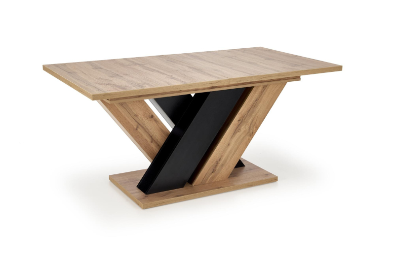 MASSIVE 2 stół rozkładany 160-250x90x77 cm dąb naturalny/czarny Przedstawiamy stół rozkładany MASSIVE 2, doskonały wybór dla tych, którzy cenią sobie funkcjonalność oraz elegancję w swoim wnętrzu. Jego unikalny design oraz staranne wykonanie sprawią, że stanie się centralnym punktem każdego salonu czy jadalni. Dzięki możliwości rozłożenia z długości 160 cm do 250 cm, z łatwością pomieści większą liczbę gości podczas rodzinnych spotkań czy przyjęć. Blat stołu wykonany jest z płyty fornirowanej w odcieniu dębu naturalnego, co nadaje mu ciepła i wyjątkowego charakteru. Krawędzie blatu wykończone są litego drewna, co zapewnia trwałość oraz elegancki wygląd. Stabilność konstrukcji zapewniają nogi wykonane ze stali malowanej proszkowo na czarno, co wprowadza nowoczesny akcent do klasycznej formy. Stół ten idealnie wkomponuje się zarówno w styl skandynawski, jak i industrialny. Wybierając MASSIVE 2, zyskujesz nie tylko estetykę, ale także praktyczność. W zestawie dostępne są opcjonalne przedłużki (wymiary: 45x90 cm - 2 szt.), które pozwalają na jeszcze większe możliwości aranżacyjne. Dzięki temu, stół dopasowuje się do Twoich potrzeb oraz ich zmieniającej się liczby, co czyni go idealnym rozwiązaniem dla każdej rodziny. Wymiary: 160-250 cm (długość) x 90 cm (szerokość) x 77 cm (wysokość) Materiał: Blat - płyta fornirowana, obrzeża - drewno lite, nogi - stal malowana proszkowo Kolor: Blat - dąb naturalny, nogi - czarny Gwarancja: 24 miesiące Samodzielny montaż: Tak, z instrukcją w przesyłce stół rozkładany, wymiary: 160-250(340)/90/77 cm, materiał: blat - płyta fornirowana, na obrzeżach drewno lite, nogi - stal malowana proszkowo, kolor: blat – dąb naturalny, nogi - czarny, * w opcji przedłużki do blatów MASSIVE 2 (wymiary: 45x90 cm - 2 szt. dodatkowo płatne)