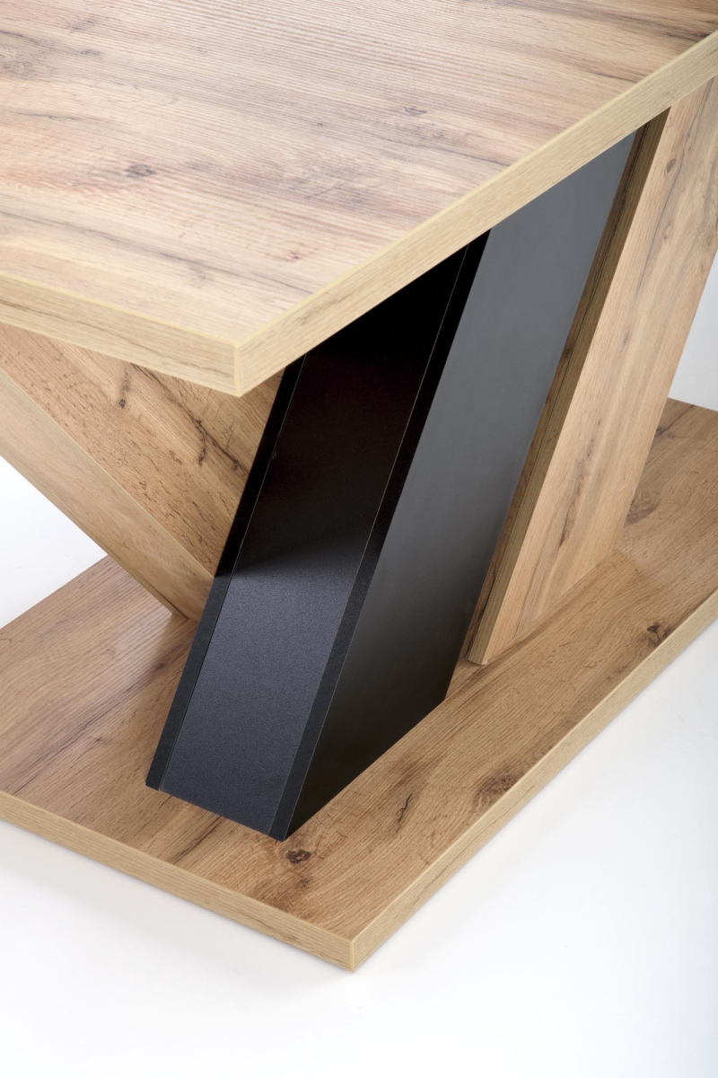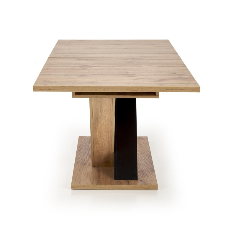 BRANDON Stół Rozkładany – Nowoczesne Połączenie Dębu Wotan i Czarnej Elegancji Przedstawiamy stół rozkładany BRANDON – stylowy i funkcjonalny mebel, który idealnie wkomponuje się w nowoczesną jadalnię lub salon. Dzięki możliwości rozkładania blatu, z łatwością dostosujesz go do liczby gości, ciesząc się zarówno codziennym komfortem, jak i przestrzenią podczas specjalnych okazji. Wykonany z trwałej płyty meblowej laminowanej w wyrazistym połączeniu kolorów dąb wotan i czarny, wniesie do Twojego wnętrza nowoczesny charakter z nutą industrialnego stylu. Kluczowe cechy, które pokochasz: