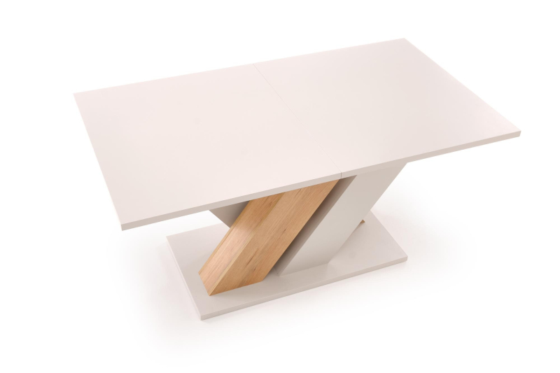 BRANDON Stół Rozkładany – Nowoczesne Połączenie Kaszmiru i Dębu Cremona Przedstawiamy stół rozkładany BRANDON – stylowy i funkcjonalny mebel, który idealnie wkomponuje się w nowoczesną jadalnię lub salon. Dzięki możliwości rozkładania blatu, z łatwością dostosujesz go do liczby gości, ciesząc się zarówno codziennym komfortem, jak i przestrzenią podczas specjalnych okazji. Wykonany z trwałej płyty meblowej laminowanej w eleganckim połączeniu kolorów kaszmir i dąb cremona, wniesie do Twojego wnętrza subtelny urok i nowoczesny charakter. Kluczowe cechy, które pokochasz: