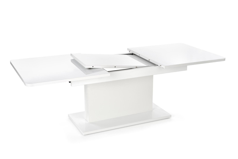Stół rozkładany GRACJAN kolor biały Stół rozkładany GRACJAN to doskonałe połączenie funkcjonalności i nowoczesnego designu, który idealnie wpasuje się w każde wnętrze. Dzięki unikalnej konstrukcji, stół umożliwia łatwe powiększenie blatu z 80 cm do 160 cm, co znacznie zwiększa możliwość aranżacji przestrzeni w zależności od potrzeb. Niezależnie od tego, czy organizujesz kameralne spotkanie, czy większą uroczystość, GRACJAN z pewnością zapewni dostateczną ilość miejsca dla Twoich gości. Wykonany z wytrzymałych materiałów, stół charakteryzuje się blatem z płyty laminowanej, która jest odporna na uszkodzenia oraz łatwa w utrzymaniu czystości. Obrzeża pokryte są ABS, co dodatkowo zwiększa trwałość mebla. Nogi stołu wykonane są z MDF laminowanego, co zapewnia stabilność oraz solidność konstrukcji. Całość w eleganckim białym kolorze doda lekkości i nowoczesności każdemu pomieszczeniu. Styl stołu GRACJAN doskonale wpisuje się w trendy minimalizmu, co sprawia, że jest odpowiedni zarówno do wnętrz klasycznych, jak i tych o bardziej nowoczesnym charakterze. Jego uniwersalny wygląd sprawia, że idealnie nadaje się do kuchni, jadalni czy salonu. Prosty, ale elegancki design sprawia, że stół stanie się centralnym punktem Twojego wnętrza. Wymiary: 80÷160 cm (długość) x 80 cm (szerokość) x 76 cm (wysokość) Materiał blatu: płyta laminowana Obrzeża: ABS Nogi: MDF laminowany Kolor: biały Gwarancja producenta: 24 miesiące Wymaga samodzielnego montażu – instrukcja montażu znajduje się w przesyłce. stół rozkładany, wymiary: 80÷160/80/76 cm, materiał: blat - płyta laminowana, na obrzeżach ABS, nogi – MDF laminowany, kolor: biały