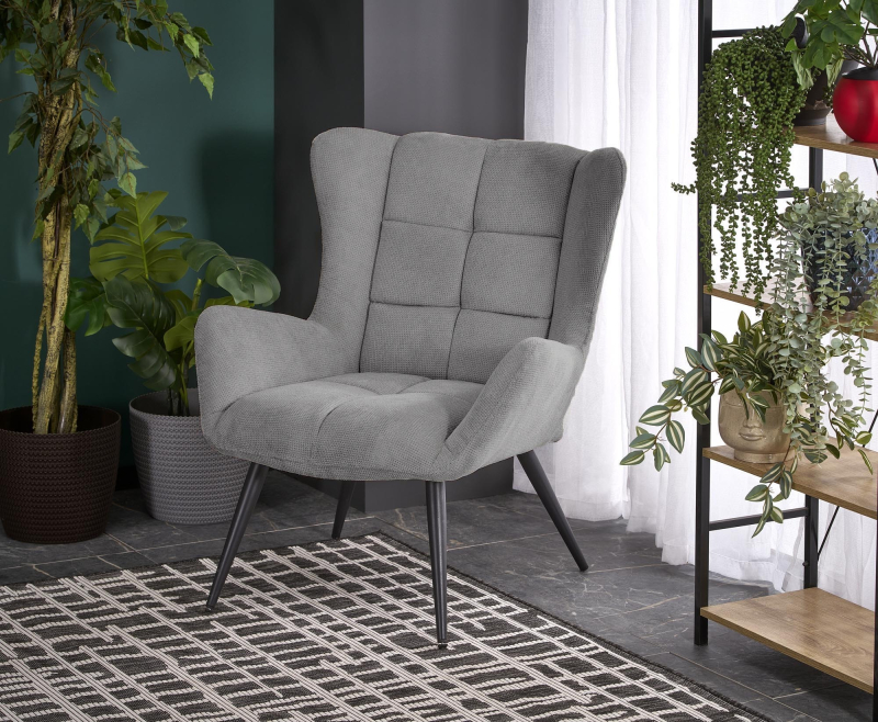 Fotel JUKON - Nowoczesna Elegancja i Komfortowy Wypoczynek z Wysokim Oparciem w Popielatym Odcieniu Odkryj fotel JUKON, który łączy w sobie nowoczesny design z wyjątkowym komfortem użytkowania. Jego wysokie, profilowane oparcie i eleganckie wykończenie w modnym popielatym kolorze sprawią, że stanie się on stylowym akcentem każdego wnętrza, od salonu po sypialnię czy gabinet. Wyrafinowany Design i Wysokiej Jakości Materiały w Popielatym Kolorze Fotel JUKON charakteryzuje się smukłą sylwetką i wysokim, lekko odchylonym oparciem, zapewniającym doskonałe podparcie dla pleców i głowy. Tapicerowany jest miękką i przyjemną w dotyku tkaniną RAVEN w eleganckim popielatym odcieniu. Tkanina ta jest nie tylko estetyczna, ale również trwała i łatwa w pielęgnacji. Stabilność i lekkość wizualną fotela zapewniają smukłe, skośne nogi wykonane ze stali malowanej proszkowo na kolor czarny. Kontrast między modną popielatą tapicerką a ciemnymi nogami podkreśla nowoczesny charakter mebla. Wyjątkowy Komfort Użytkowania Ergonomicznie zaprojektowane oparcie, wygodne siedzisko oraz subtelne podłokietniki fotela JUKON gwarantują komfortowy wypoczynek. Idealnie sprawdzi się podczas relaksu z książką, oglądania ulubionego filmu czy jako stylowy element dekoracyjny. Cechy Produktu: Typ: Fotel wypoczynkowy Model: JUKON Materiał: Tkanina RAVEN / Stal malowana proszkowo Kolor: Popielaty #10 / Czarny Styl: Nowoczesny, elegancki Wymiary (z dokładnością +/- 1-2%): Szerokość: 74 cm Głębokość: 87 cm Wysokość: 108 cm Wysokość siedziska: 45 cm Dodatkowe Informacje: Towar do samodzielnego montażu - instrukcja dołączona do przesyłki. Gwarancja: 24 miesiące Wprowadź do swojego domu nowoczesną elegancję i komfort w modnym popielatym odcieniu z fotelem JUKON! Zamów już dziś i ciesz się stylowym wypoczynkiem.