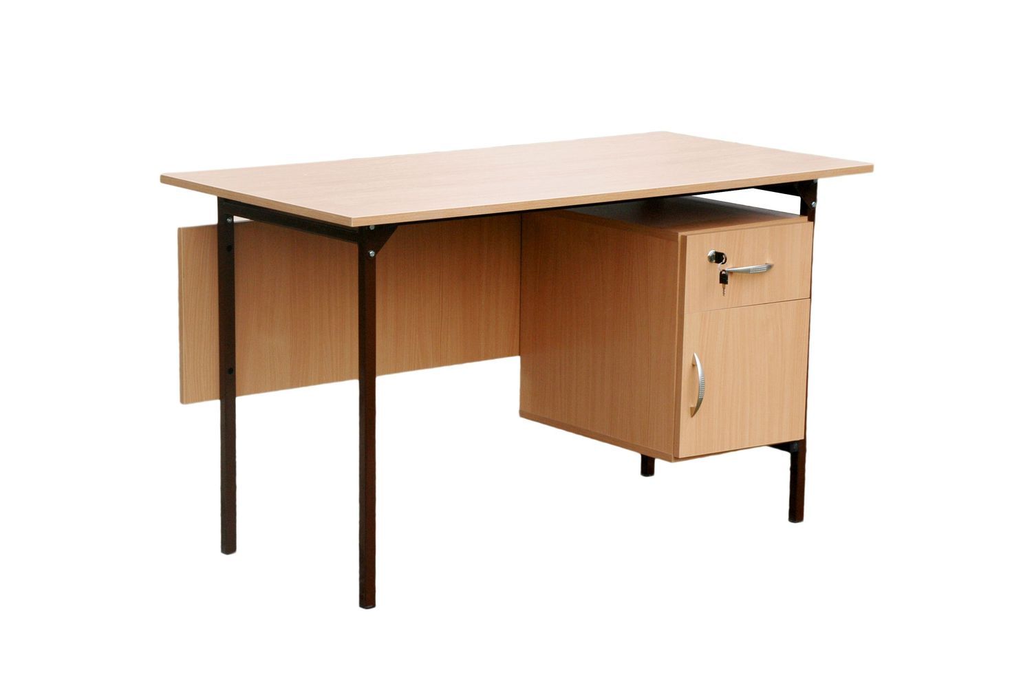 Kontener do lady z szufladą i szafką, typ D Dane techniczne Wykonany z płyty laminowanej 18mm, obrzeże oklejone PCV. Wymiary (WxSxG) 560x400x500 mm. Górna szuflada i szafka zamykane na zamek. Do zestawu można dokupić lady recepcyjne z kolekcji PREMIO - wszystkie meble będą wykonane w tej samej kolorystyce i będą stanowiły całość wyposażenia biura. Kolorystyka płyty meblowej do wyboru. Wyboru dokonujemy w konfiguracji modelu, która znajduje się powyżej. Certyfikat Regał posiada certyfikat dopuszczający do użytkownia w jednostkach oświatowych (certyfikat COBRABID). Terminy Towar na zamówienie. Produkcja około 4-6 tygodni. Gwarancja 24 miesiące