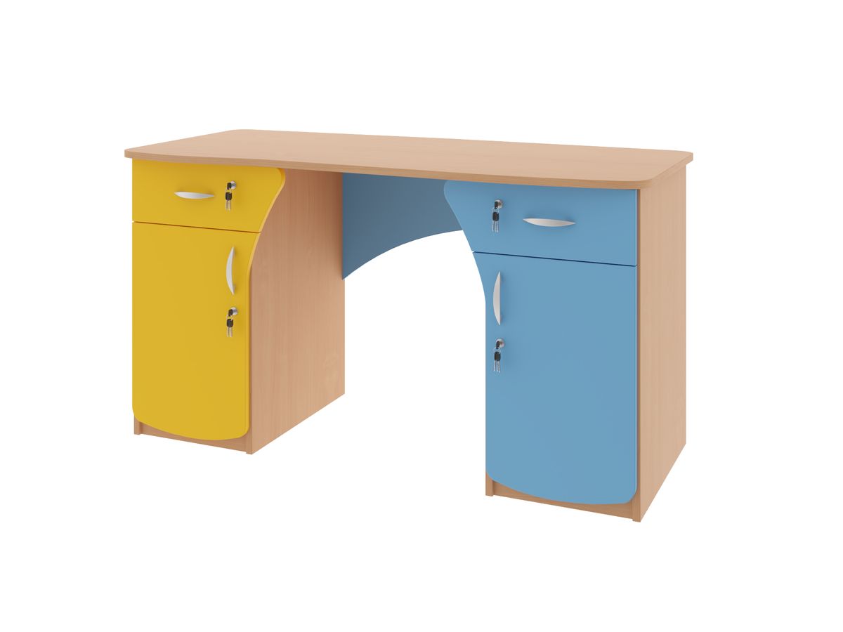 Kontener do lady z szufladą i szafką, typ D Dane techniczne Wykonany z płyty laminowanej 18mm, obrzeże oklejone PCV. Wymiary (WxSxG) 560x400x500 mm. Górna szuflada i szafka zamykane na zamek. Do zestawu można dokupić lady recepcyjne z kolekcji PREMIO - wszystkie meble będą wykonane w tej samej kolorystyce i będą stanowiły całość wyposażenia biura. Kolorystyka płyty meblowej do wyboru. Wyboru dokonujemy w konfiguracji modelu, która znajduje się powyżej. Certyfikat Regał posiada certyfikat dopuszczający do użytkownia w jednostkach oświatowych (certyfikat COBRABID). Terminy Towar na zamówienie. Produkcja około 4-6 tygodni. Gwarancja 24 miesiące
