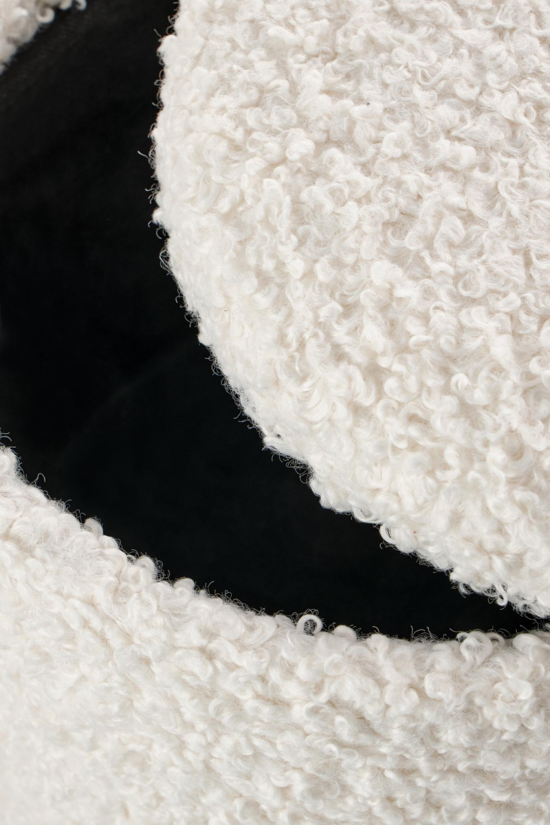 wymiary: fi38/43 oraz fi31/36 cm, zestaw 2 puf z funkcją pojemnika, materiał: tkanina - bouclé / sklejka gięta + okleina naturalna, kolor: kremowy - naturalny