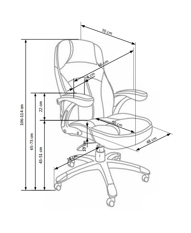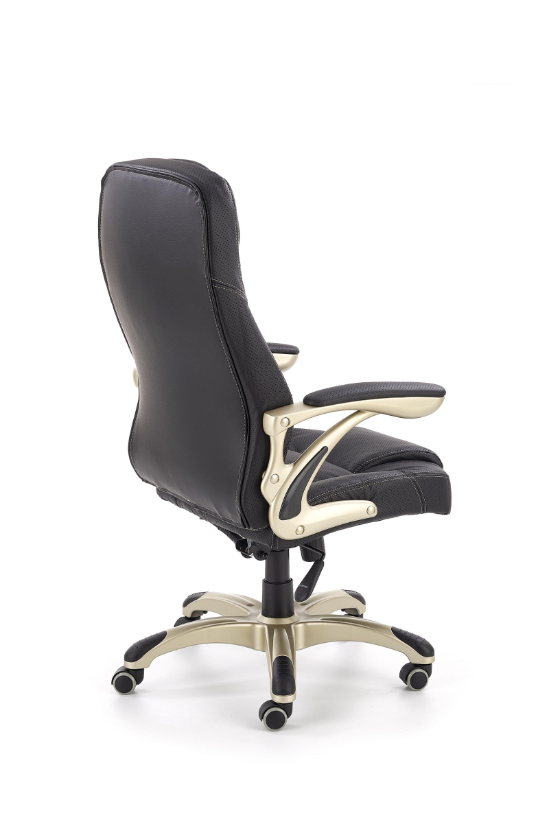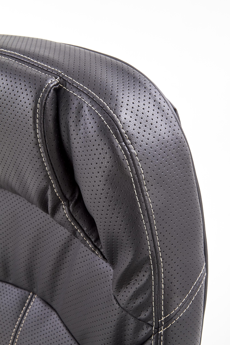 mechanizm multiblock, kółka powlekane kauczukiem, wymiary: 66/70/106÷114 cm, materiał: eco skóra perforowana, kolor: czarny
