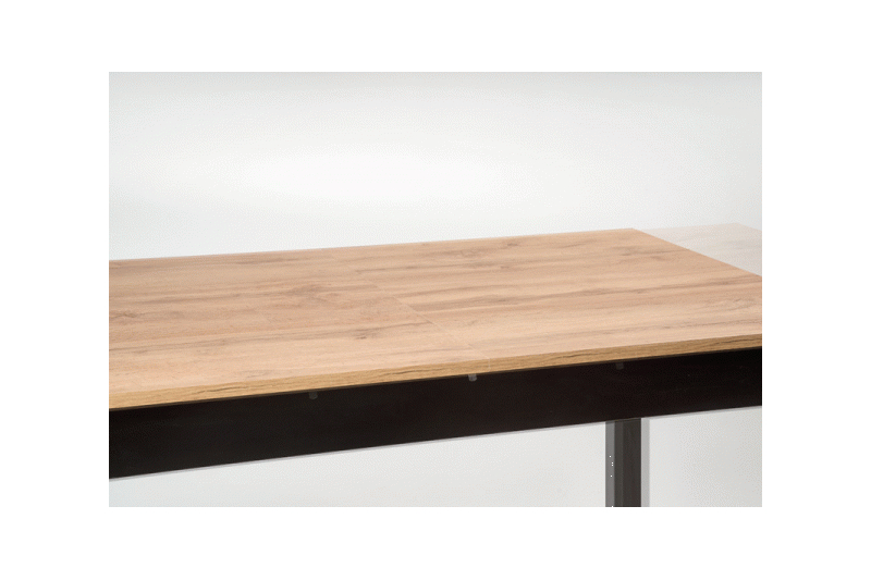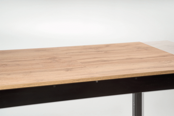 INFERNO stół rozkładany dąb naturalny - czarny Stół rozkładany INFERNO to idealne połączenie nowoczesnego designu z funkcjonalnością, które z pewnością wzbogaci Twoje wnętrze. Wykonany z wysokiej jakości materiałów, stół ten nie tylko prezentuje się stylowo, ale także zapewnia trwałość na lata. Jego naturalny dąb oraz stalowe nogi w odcieniu czarnym harmonijnie łączą się, tworząc elegancki element wyposażenia zarówno do jadalni, jak i salonu. Wymiary: rozkłada się od 100 cm do 300 cm długości, idealny do różnorodnych przestrzeni i okazji. Materiał: wytrzymały MDF pokryty okleiną naturalną dębową oraz solidne nogi wykonane ze stali malowanej proszkowo. Kolor: naturalny dąb na blacie oraz czarny na nogach, co nadaje mu nowoczesny i elegancki wygląd. Styl: minimalistyczny, który doskonale wpisze się w różne aranżacje wnętrz, od skandynawskich po industrialne. Stół INFERNO to nie tylko estetyka, ale także funkcjonalność, której potrzebujesz w codziennym użytkowaniu. Możliwość rozłożenia go pozwala na wygodne serwowanie większych posiłków i organizowanie spotkań rodzinnych czy towarzyskich. Jego designerskie wykończenie sprawia, że stanie się centralnym punktem każdej przestrzeni, zachwycając gości i domowników. Gwarancja producenta: 24 miesiące. Samodzielny montaż: stół dostarczany jest z instrukcją, co ułatwia jego szybkie i bezproblemowe złożenie. Dostawa: Oferujemy płatną usługę dostawy z wniesieniem. Prosimy o zaznaczenie tej opcji podczas składania zamówienia, aby cieszyć się komfortem bez dodatkowego wysiłku. Koszt usługi zostanie doliczony do zamówienia. stół rozkładany, wymiary: 100-300/100/76 cm, materiał: MDF + okleina naturalna (dębowa) / stal malowana proszkowo, kolor: blat - dąb naturalny, nogi - czarny
