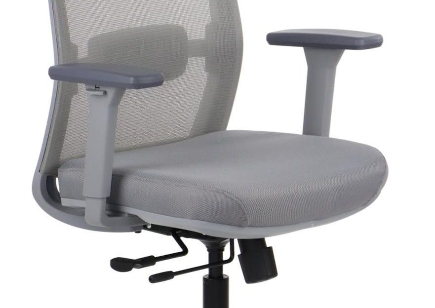Fotel biurowy ERGOFIX TM06 szary Mechanizm Synchroniczny mechanizm ruchowy (Synchro SELF). Po zwolnieniu blokady, oparcie wychyla się w ruchu synchronicznym z siedziskiem naśladując ruch użytkownika w krześle. Wychylenie oparcia podążające za ruchem pleców użytkownika jest znacznie wyraźniejsze i szybsze aniżeli ruch siedziska. Siła oporu jaki stawia oparcie podczas wychylenia jest automatycznie dobrana do wagi Użytkownika - to funkcja "SELF" mechanizmu Synchro. Użytkownik w każdej chwili ma również możliwość blokady wybranej pozycji wychylenia oparcia i siedziska poprzez ruch dźwigni umieszczonej pod siedziskiem. Funkcja ANTI-Shock zapobiega gwałtownemu uderzeniu oparcia w plecy Użytkownika po zwolnieniu wybranej pozycji wychylenia. Siedzisko Tapicerowane tkaniną TM, która jest miła w dotyku, oddychająca, odporna na peeling i ścieralność ponad 35 tyś cykli Martindalea. Tkanina zapewnia dobra cyrkulację powietrza, jest łatwa w utrzymaniu czystości. Kolor tapicerki - szary. Oparcie Tapicerowane jest siatką, która dobrze dopasowuje się do pleców Użytkownika i zapewnia odpowiednią cyrkulację powietrze. Kolor siatki - szary. Wyposażone: w profil lędźwiowy o regulowanej wysokości, zagłówek o regulowanym kącie położenia, który pozwala na ergonomiczne podparcie głowy podczas pracy. Podłokietniki Regulowane w trzech płaszczyznach (3D): góra dół: pozwala na dostosowanie jego wysokości tak aby przedramię ułożone było pod kątem 90 stopni do tułowia, co znacznie odciąża mięśnie pleców podczas długiej pracy w pozycji siedzącej. Zakres regulacji wysokości podłokietnika to 6 cm; kąt położenia nakładki w zakresie +/- 15 stopni (skierowanie nakładek do wewnątrz siedziska ułatwia pisanie na klawiaturze, zaś ich skierowanie na zewnątrz ułatwia swobodne wstawanie z krzesła); przód - tył: regulacja nakładki podłokietnika przód/tył pozwala dostosować go do długości przedramienia; Podstawa Pięcioramienna czarna - nylonowa podstawa jezdna o lekkiej nowoczesnej stylistyce. Kółka miękkie: do powierzchni twardych tj. panele, glazura Wymiary Atest Atest Wytrzymałości i Bezpieczeństwa Użytkowania wydany przez PUR Remodex Zakład Badań i Wdrożeń Przemysłu Meblarskiego. Sposób przeprowadzenia badań wg: PN-EN 1335-1:2004 PN-EN 1335-2:2009 PN-EN 1335-3:2009 Zgodnie z atestem: ,,UWAGA: dopuszczalne maksymalne obciążenie siedziska - 150 kg". Gwarancja 24 miesiące.