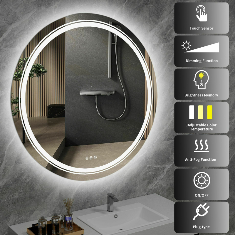DOVER 80 - Luksusowe Lustro Ścienne Łazienkowe z Podświetleniem LED Odkryj nowoczesność i funkcjonalność z lustrem ściennym łazienkowym DOVER 80. To eleganckie, okrągłe lustro w srebrnym kolorze to idealne rozwiązanie, które odmieni wygląd każdej łazienki, dodając jej luksusowego charakteru i zapewniając niezrównany komfort użytkowania. Kluczowe cechy: