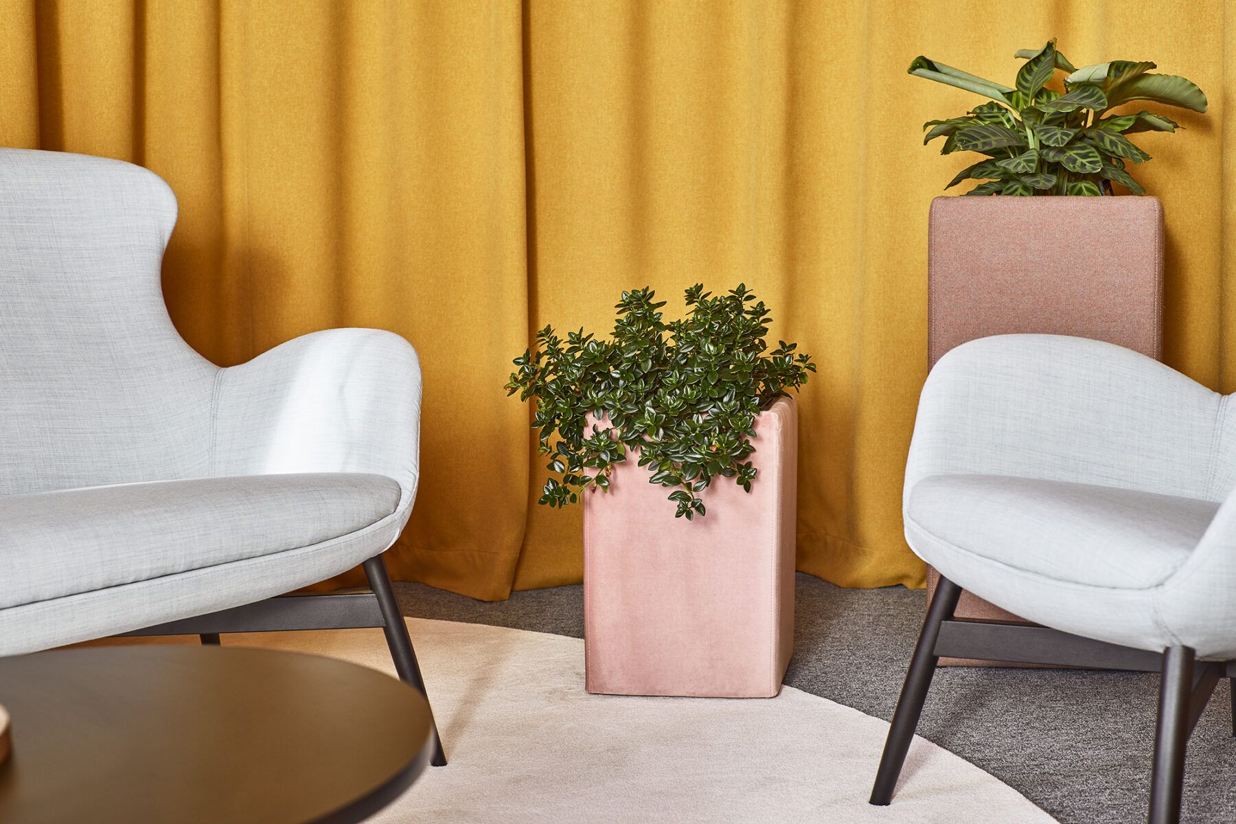 - tapicerowane donice w dwóch wysokościach,
