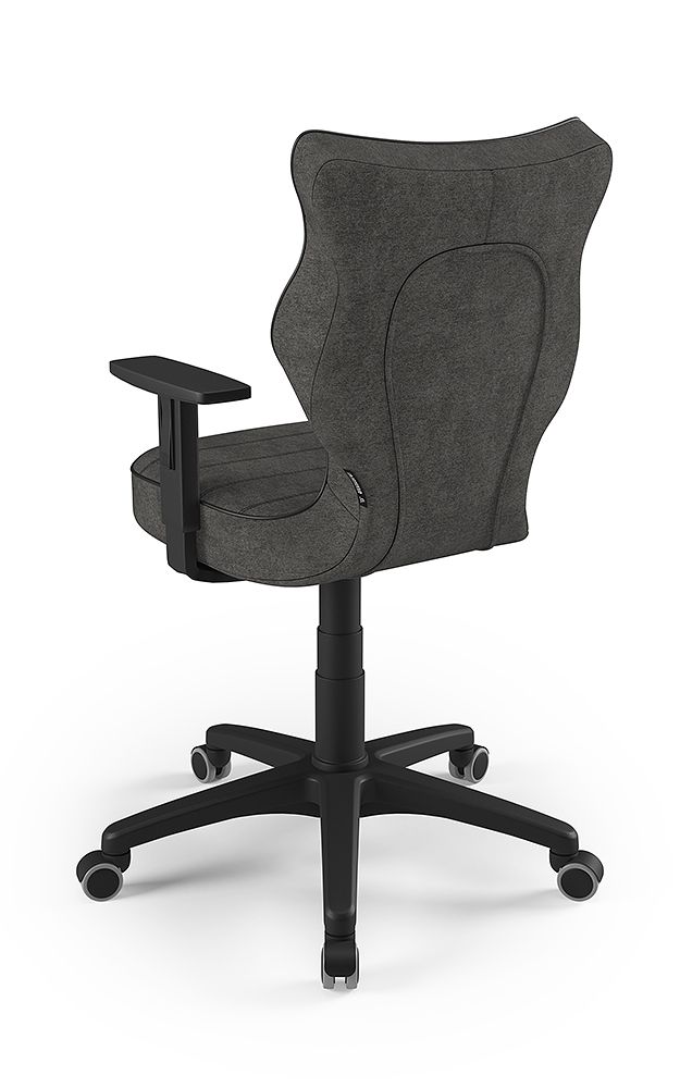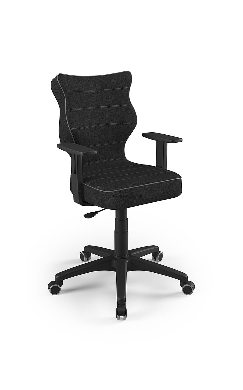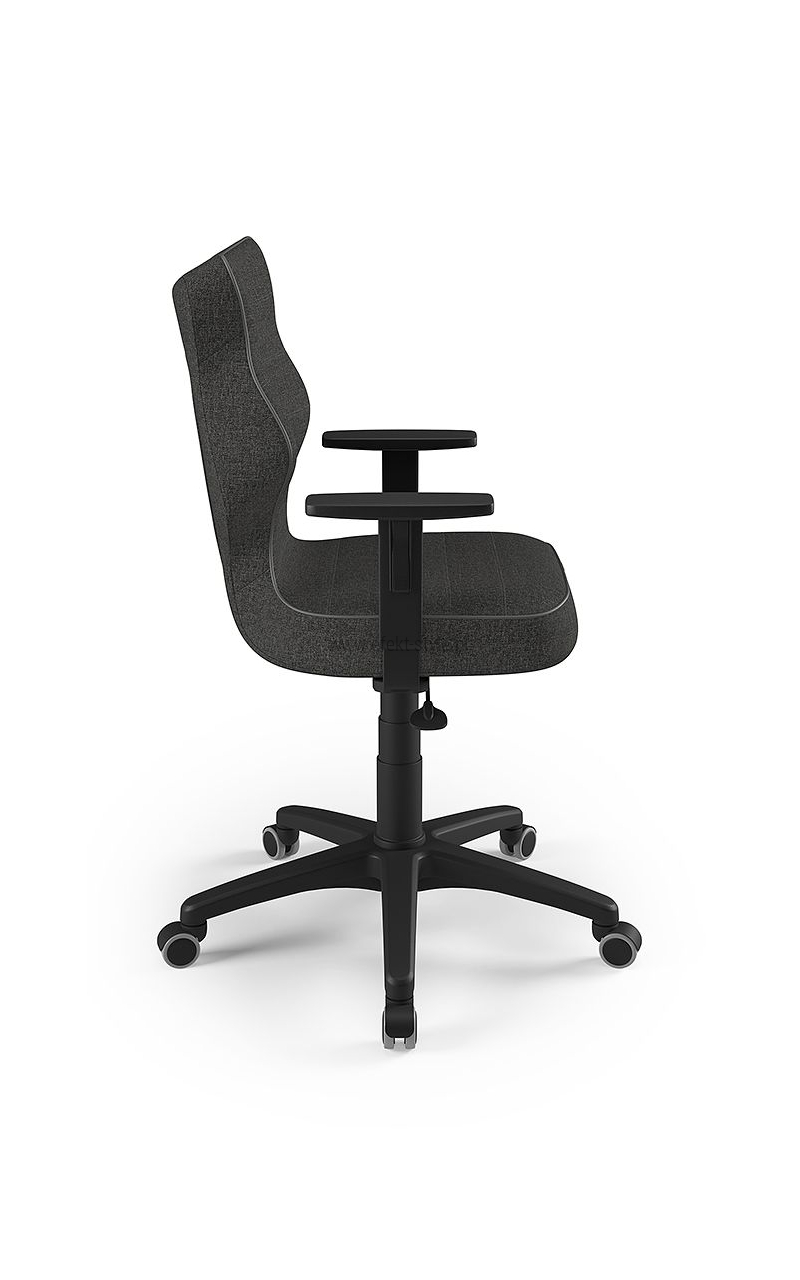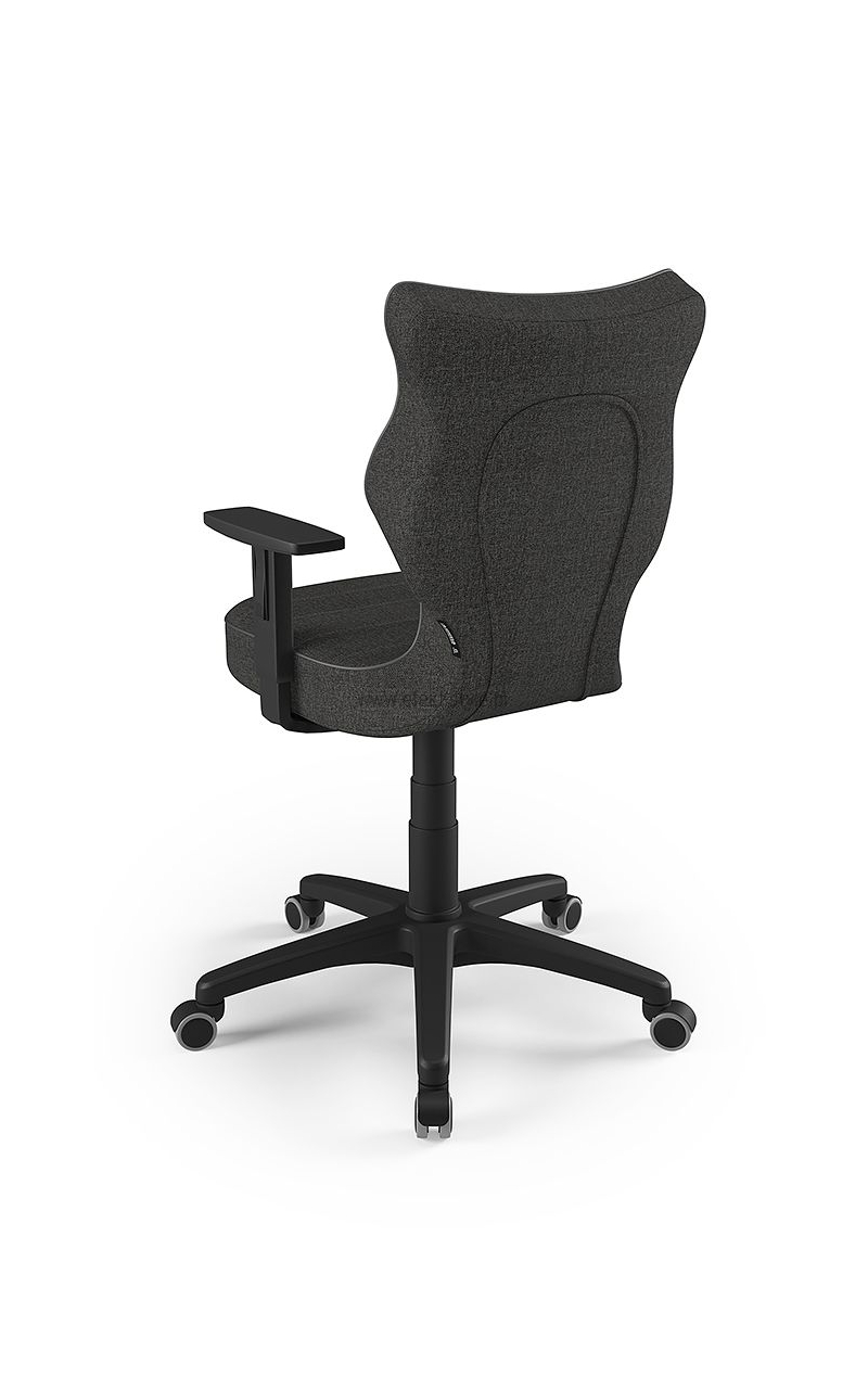 ENTELO Dobre Krzesło obrotowe DUO nr 6 - podstawa biała Terminy Towar na zamówienie. Czas produkcji 2-4 tygodnie. To linia Dobrych Krzeseł posiadająca parametry ergonomiczne, które odpowiadają za zachowanie prawidłowej postawy siedzącej. Wykończenie krzesła oraz szeroki wybór koloru tapicerki sprawia, że model pasuje do każdego wnętrza. Duo posiada regulowane podłokietniki umożliwiające wsunięcie krzesła pod blat biurka. Podstawę krzesła wykonano z tworzywa sztucznego oraz włókna szklanego. W zestawie znajdują się kółka miękkie umożliwiające ruch krzesła zarówno po powierzchniach twardych jak i wykładzinach. Produkt zaprojektowany i wyprodukowany w Polsce. Dane techniczne Egonomiczne siedzisko wykonane z tworzywa sztucznego. Podłokietniki regulowane, twarde w kolorze białym. Mechanizm: Blacha siedziska z dźwignią prosta. Podnośnik gazowy: Stal + tworzywo sztuczne. Teleskopowa osłonka na podnośnik gazowy w kolorze białym. Baza: Podstawa pięcioramienna biała (tworzywo sztuczne). Kółka miękkie średnica 50 mm, średnica trzpienia fi 11 w kolorze białym (tworzywo sztuczne) - umożliwiające ruch krzesła zarówno po powierzchniach twardych jak i wykładzinach. Za dopłatą stopki o średnicy trzpienia FI 11 wykonane z tworzywa sztucznego. Wymiary Rozmiar nr 6: Głębokość siedziska: 40 cm Szerokość siedziska: 42,5 cm Wysokość oparcia: 42,5 cm Dodatkowe informacje Model DUO posiada certyfikat zgodności z normą PN-EN 1335-1:2004, PN-EN 1335-2:2009.