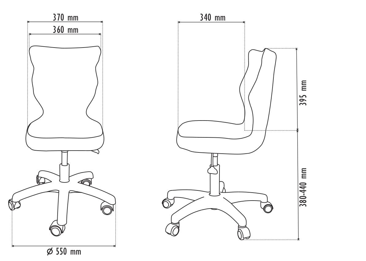 2. Optymalne krzywizny oparcia (kąt zgodny z normą PN-EN 1729 -1:2007) - mobilizują pracę mięśni przykręgosłupowych, wzmacniając kręgosłup.