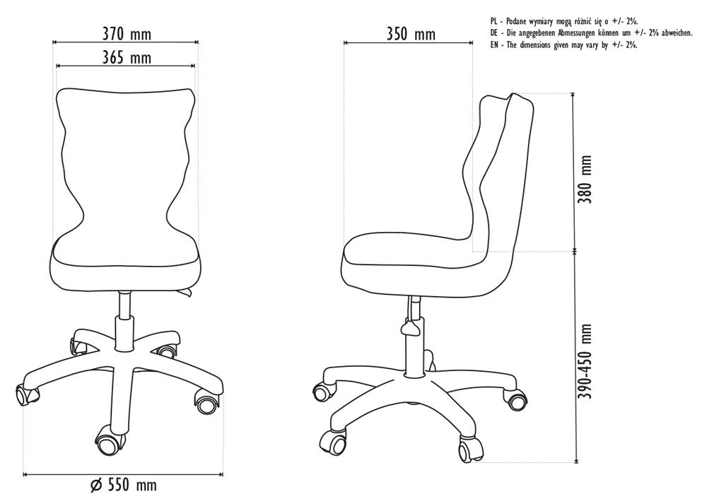 Krzesło szkolne Spider soft nr 2 Dobre krzesło Entelo Krzesła w rozmiarach od 1- 4 wymagają biurek (stolików) o odpowiedniej wysokości blatu. Krzesło szkolne profilowane przeznaczone dla dzieci i młodzieży. Oferowane przez naszą firmę krzesło ucznia jest specjalnie przygotowaną ofertą w porozumieniu z ze specjalistami w zakresie postawy dziecka, tak aby było krzesłem ergonomicznym i idealnie dopasowanym do sylwetki "młodego kręgosłupa". Dobre krzesło to produkt profilaktyczny, który poprzez wyprofilowanie lordozy lędźwiowej wymusza obciążenie guzów kulszowych. Prawidłowe ustawienie miednicy jest podstawą do prawidłowego ustawienia górnych segmentów kręgosłupa. Jest ono odpowiedzią na poszerzającą się w szybkim tempie grupę dzieci i młodzieży z wadami postawy, które wpływają na stan zdrowia i sprawność fizyczną młodego pokolenia. Kubełek Krzesło wyprodukowane w technologii rozdmuchu, umożliwiającej powstanie tzw. płaszcza termicznego. Kubełek: wykonany z tworzywa (polietylen wysokociśnieninowy). Model posiada miękkie tapicerowane siedzisko w kolorze czarnym. Z tyłu siedziska umieszczono uchwyt do szybkiego przenoszenia krzesła. Kolorystyka kubełka do wyboru w "Konfiguratorze Modelu". Dostępne kolory: Dostępne 4 nowe kolory kubełków: Stelaż Pająk. Malowany proszkowo na kolor szary. Stelaż o średnicy 22 mm. Stopki antypoślizgowe: -białe (tworzywo sztuczne). Wymiary Rozmiar nr 2: Wzrost dziecka: 108 cm - 121 cm Wysokość siedziska: 31 cm Głębokość siedziska: 26 cm Szerokość siedziska: 29 cm Wysokość oparcia: 30 cm Terminy Towar na zamówienie. Czas produkcji do 8 tygodni. Gwarancja Gwarancja 24-miesięczna. Kolekcja Spider posiada certyfikat potwierdzający zgodność z normą PN-EN 1729-1:2016-02, PN-EN 1729-2+A1:2016-02. Krzesło posiada Atest Higieniczny. 10 różnic pomiędzy Dobrym Krzesłem, a tradycyjnym produktem: 1. Wklęsło-wypukła forma krzesła – rozwiązanie wspomaga prawidłowe ułożenie kręgosłupa. 2. Optymalne krzywizny oparcia (kąt zgodny z normą PN-EN 1729 -1:2007) - mobilizują pracę mięśni przykręgosłupowych, wzmacniając kręgosłup. 3. Odpowiednio wyprofilowane siedzisko – wykonanie zgodnie z zasadami ergonomii zapewnia użytkownikowi maksimum komfortu, stymuluje tułów do prawidłowego ułożenia. 4. Struktura krzesła - zmniejsza odbicia sztucznego oświetlenia. 5. Komfort termiczny – innowacyjna technologia wytwarzania umożliwia powstanie płaszcza termicznego pomiędzy dwoma płaszczyznami krzesła, zapewniając komfort dla pleców i pośladków. 6. Elastyczność (która powoduje „dynamiczny” siad – wymóg współczesnej ergonomii) oraz brak ostrych krawędzi. 7. Łatwość utrzymania siedziska w czystości - jego powierzchnia nie elektryzuje się. 8. Duża wytrzymałość - osiągnięta dzięki unikalnej technologii wytwarzania - zapewnia wielokrotnie dłuższy czas użytkowania. 9. Wysoka stabilność – uzyskana z połączenia doświadczeń specjalistów z zakresu ergonomii i rehabilitacji ruchowej. 10. Przyjazne środowisku - w pełni nadaje się do ponownego przetworzenia – tradycyjne krzesła nie nadają się do recyklingu. Ergonomia krzesła dla dziecka: zapoznaj się klikając na poniższe zdjęcie