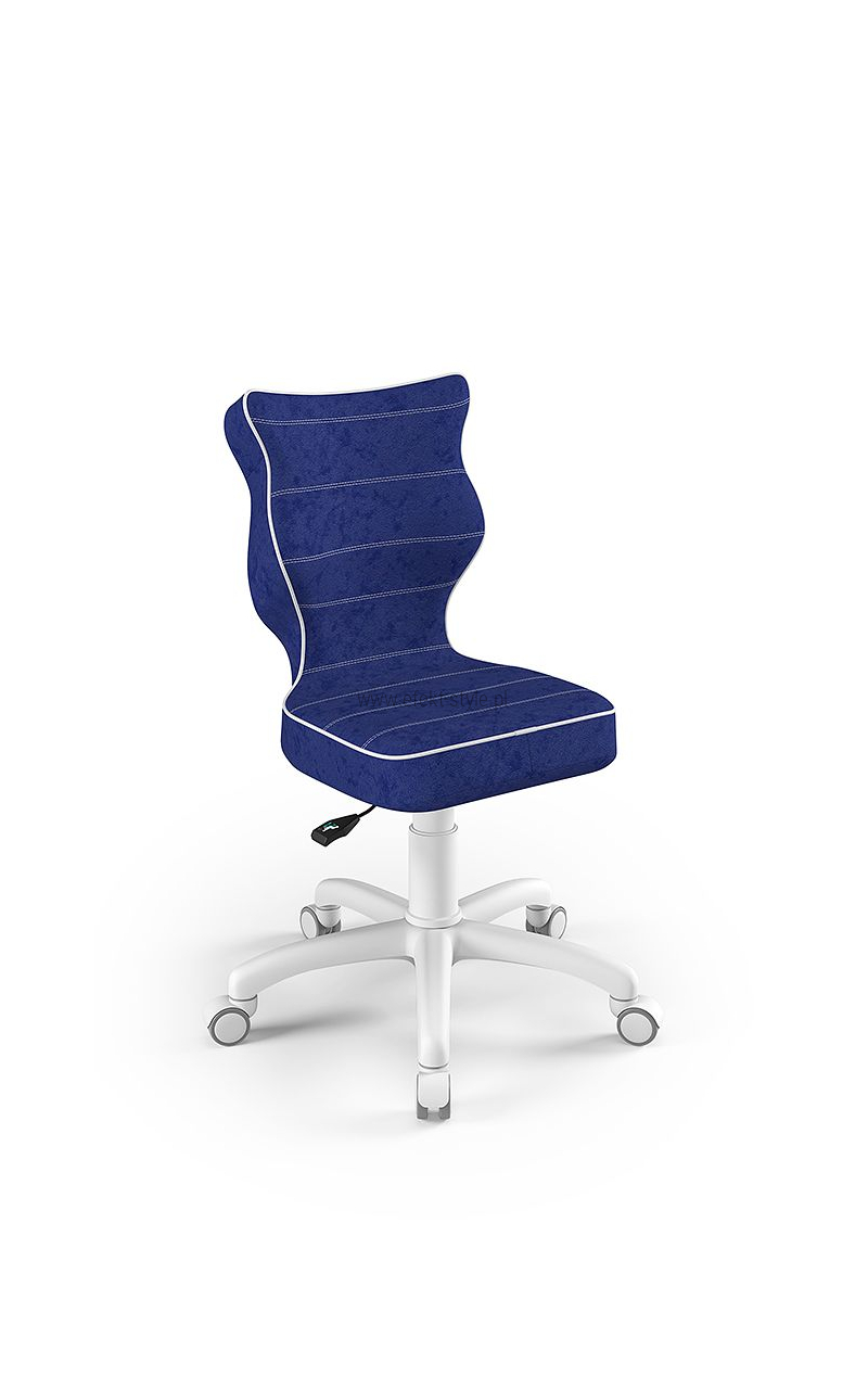 ENTELO Dobre Krzesło obrotowe DUO nr 6 - podstawa biała Terminy Towar na zamówienie. Czas produkcji 2-4 tygodnie. To linia Dobrych Krzeseł posiadająca parametry ergonomiczne, które odpowiadają za zachowanie prawidłowej postawy siedzącej. Wykończenie krzesła oraz szeroki wybór koloru tapicerki sprawia, że model pasuje do każdego wnętrza. Duo posiada regulowane podłokietniki umożliwiające wsunięcie krzesła pod blat biurka. Podstawę krzesła wykonano z tworzywa sztucznego oraz włókna szklanego. W zestawie znajdują się kółka miękkie umożliwiające ruch krzesła zarówno po powierzchniach twardych jak i wykładzinach. Produkt zaprojektowany i wyprodukowany w Polsce. Dane techniczne Egonomiczne siedzisko wykonane z tworzywa sztucznego. Podłokietniki regulowane, twarde w kolorze białym. Mechanizm: Blacha siedziska z dźwignią prosta. Podnośnik gazowy: Stal + tworzywo sztuczne. Teleskopowa osłonka na podnośnik gazowy w kolorze białym. Baza: Podstawa pięcioramienna biała (tworzywo sztuczne). Kółka miękkie średnica 50 mm, średnica trzpienia fi 11 w kolorze białym (tworzywo sztuczne) - umożliwiające ruch krzesła zarówno po powierzchniach twardych jak i wykładzinach. Za dopłatą stopki o średnicy trzpienia FI 11 wykonane z tworzywa sztucznego. Wymiary Rozmiar nr 6: Głębokość siedziska: 40 cm Szerokość siedziska: 42,5 cm Wysokość oparcia: 42,5 cm Dodatkowe informacje Model DUO posiada certyfikat zgodności z normą PN-EN 1335-1:2004, PN-EN 1335-2:2009.