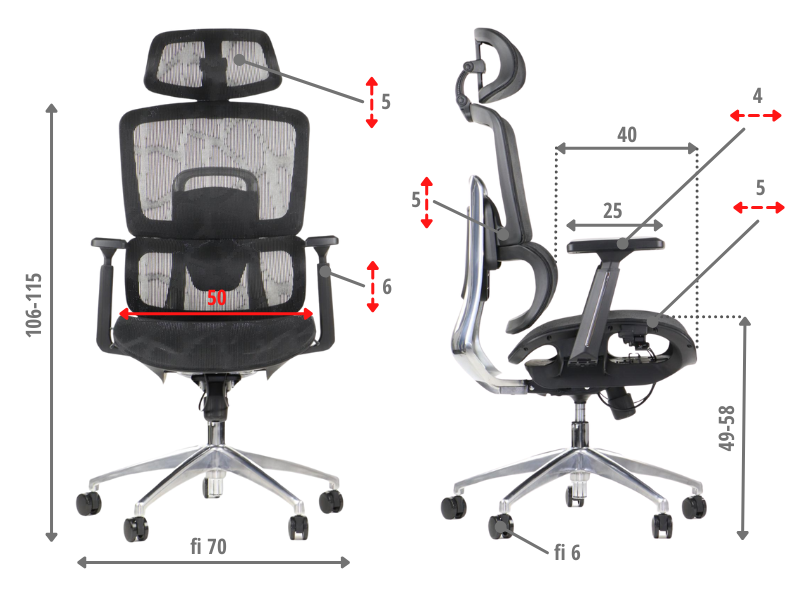 | Regulowana wysokość oparcia: | regulowana wysokość oparcia |