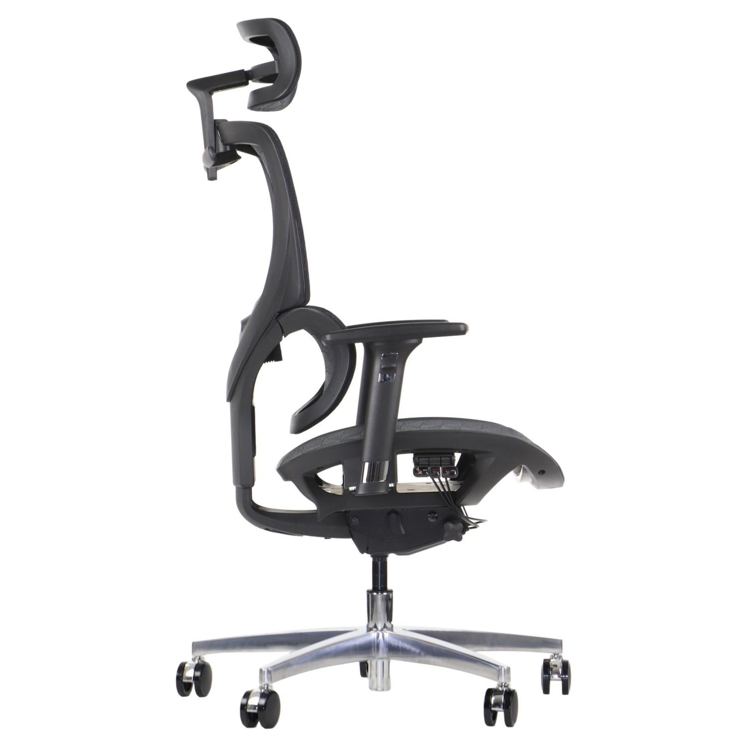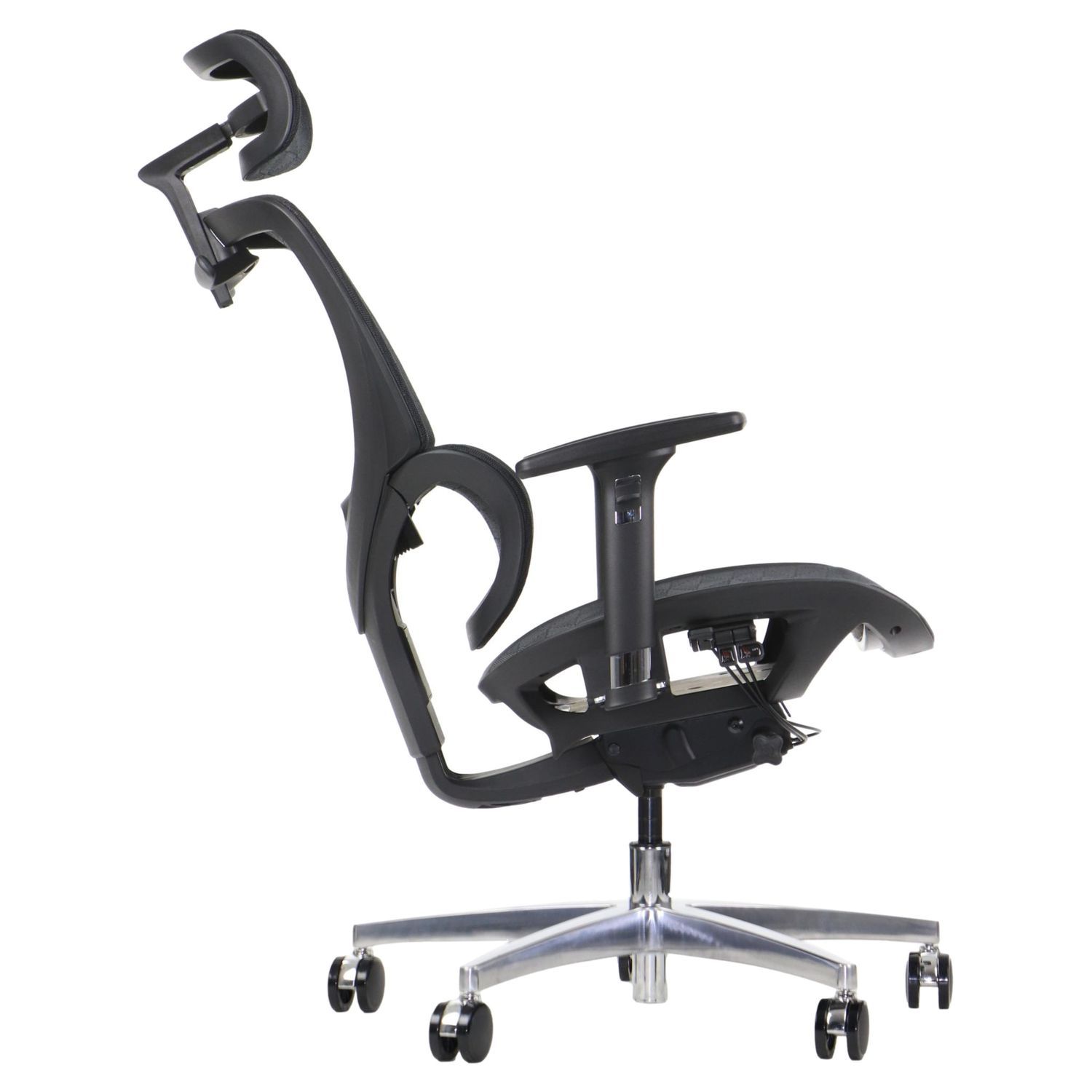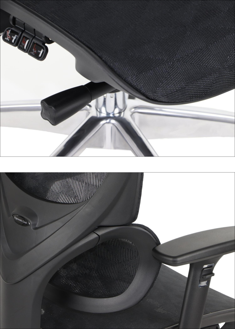 FOTEL OBROTOWY ERGOTHRONE Z PODNÓŻKIEM / CZARNY Dane techniczne: Zagłówek, oparcie i siedzisko tapicerowane wysokiej jakości siatką Mechanizm samoważący SYNCHRON Regulowane podłokietniki góra-dół, przód-tył, wychylenie na boki Regulowana wysokość oparcia i zagłówka Regulowana wysokość oparcia dla kręgów lędźwiowych Podstawa jezdna wykonana z lakierowanego aluminium w kolorze czarnym Fotel wyposażony w wygodny podnóżek (maksymalne obciążenie podnóżka do 45 kg) kolorystyka czarny Wymiary: Obciążenie 130 kg Gwarancja: 3 lata