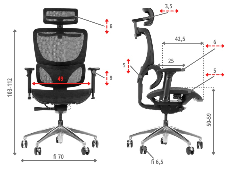 | Regulowana wysokość oparcia: | regulowana wysokość oparcia |