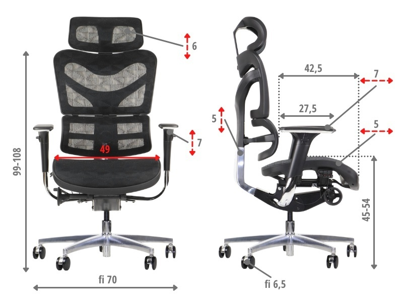 Ponadto regulacja wysokości, odchyłu i wysuwu siedziska to kluczowe funkcje, które pozwalają dostosować fotel do indywidualnych preferencji użytkownika. W fotelu ERGONew regulacja ta odbywa się za pomocą przycisków umiejscowionych przy siedzisku, co zapewnia wygodny i intuicyjny sposób dostosowywania pozycji siedzenia.