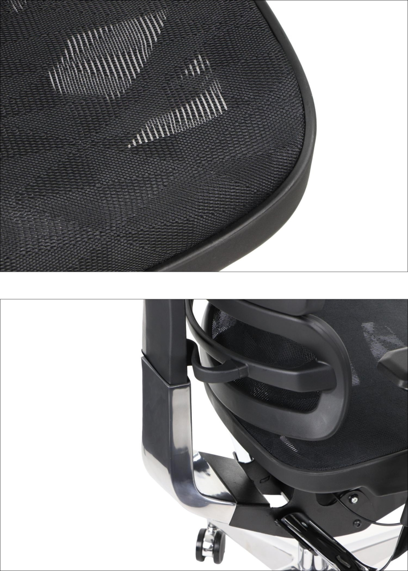 Wsporniki podłokietników wykonane z aluminiowego odlewu dodają fotelowi biurowemu