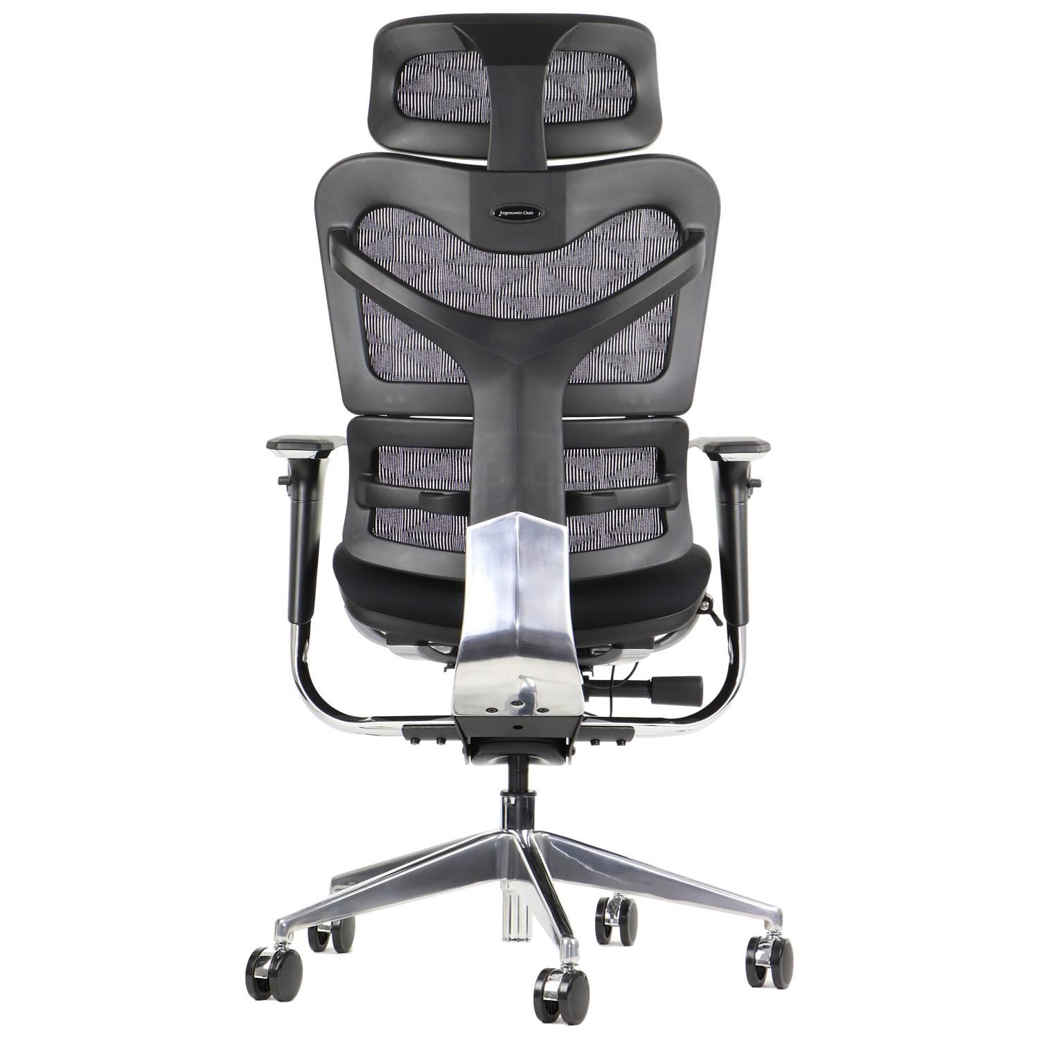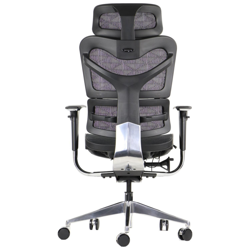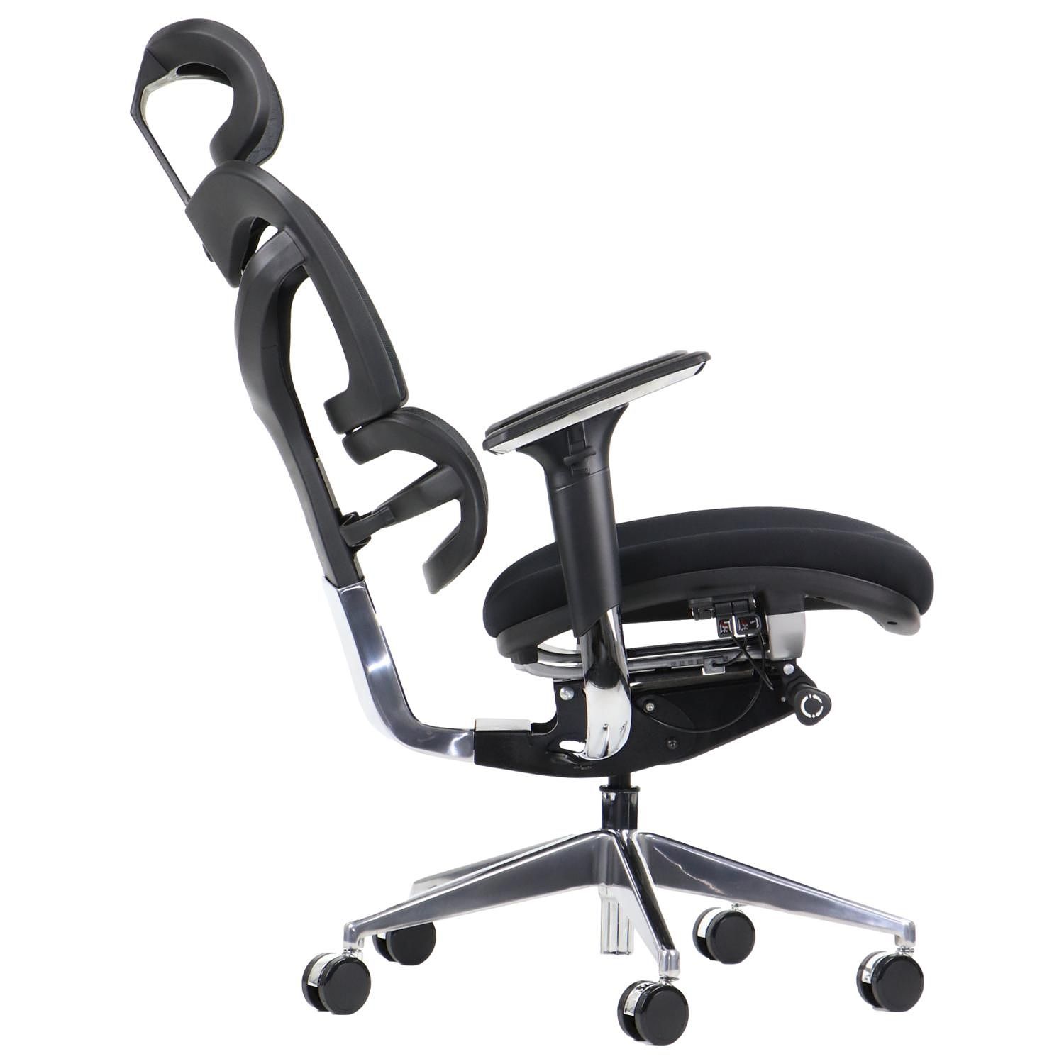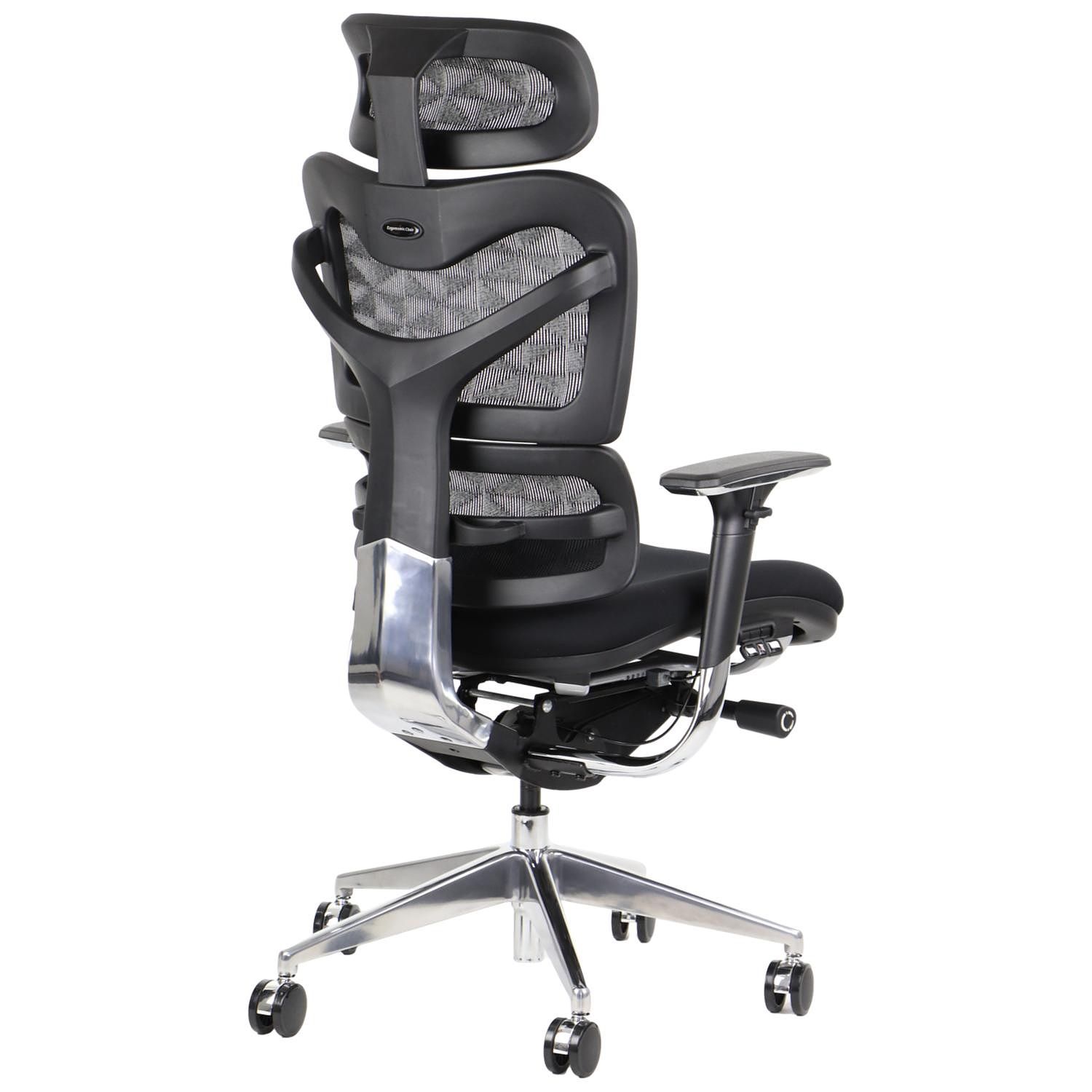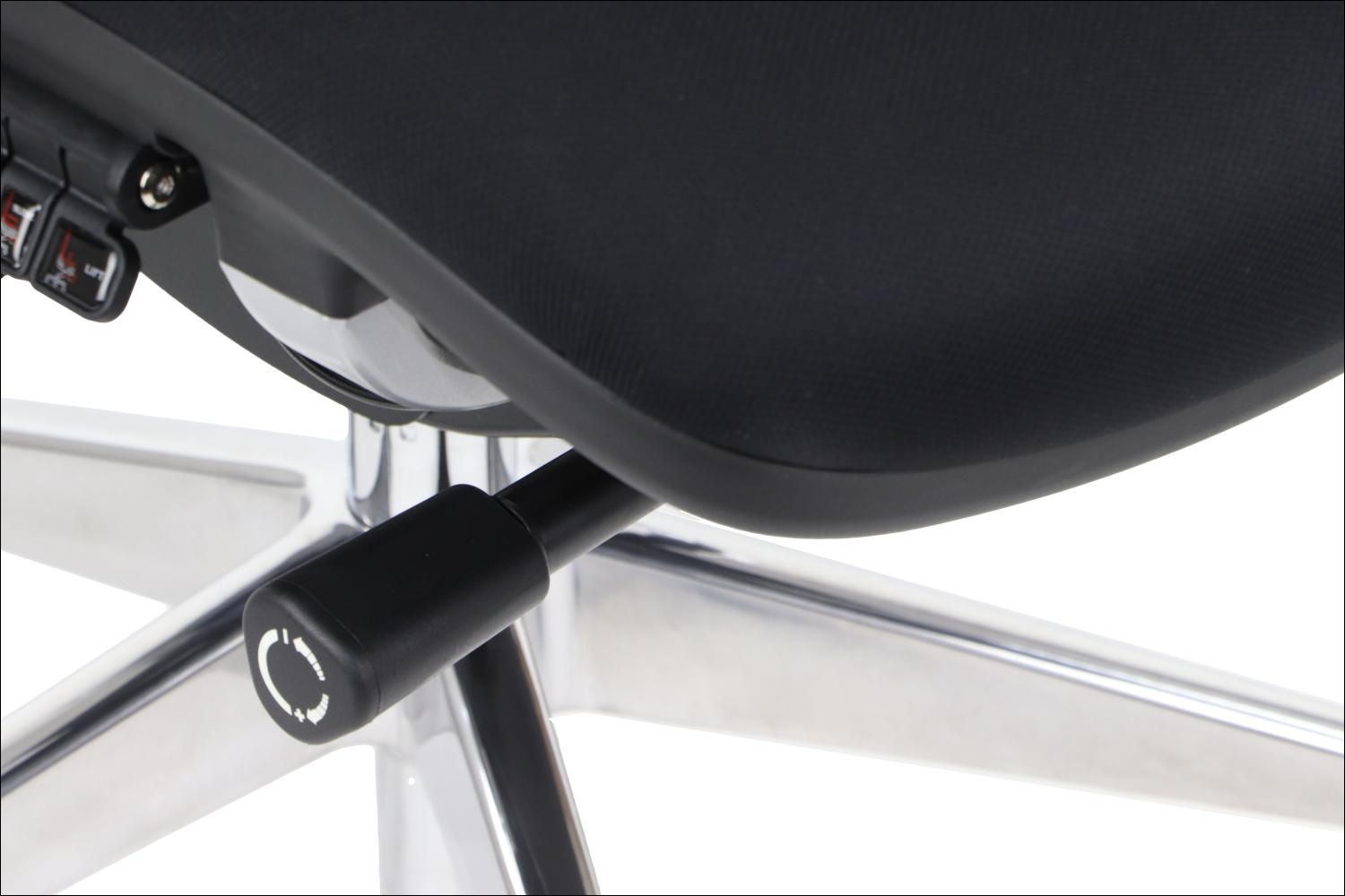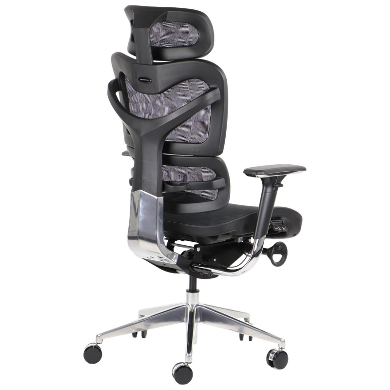 FOTEL OBROTOWY ERGOTHRONE Z PODNÓŻKIEM / CZARNY Dane techniczne: Zagłówek, oparcie i siedzisko tapicerowane wysokiej jakości siatką Mechanizm samoważący SYNCHRON Regulowane podłokietniki góra-dół, przód-tył, wychylenie na boki Regulowana wysokość oparcia i zagłówka Regulowana wysokość oparcia dla kręgów lędźwiowych Podstawa jezdna wykonana z lakierowanego aluminium w kolorze czarnym Fotel wyposażony w wygodny podnóżek (maksymalne obciążenie podnóżka do 45 kg) kolorystyka czarny Wymiary: Obciążenie 130 kg Gwarancja: 3 lata