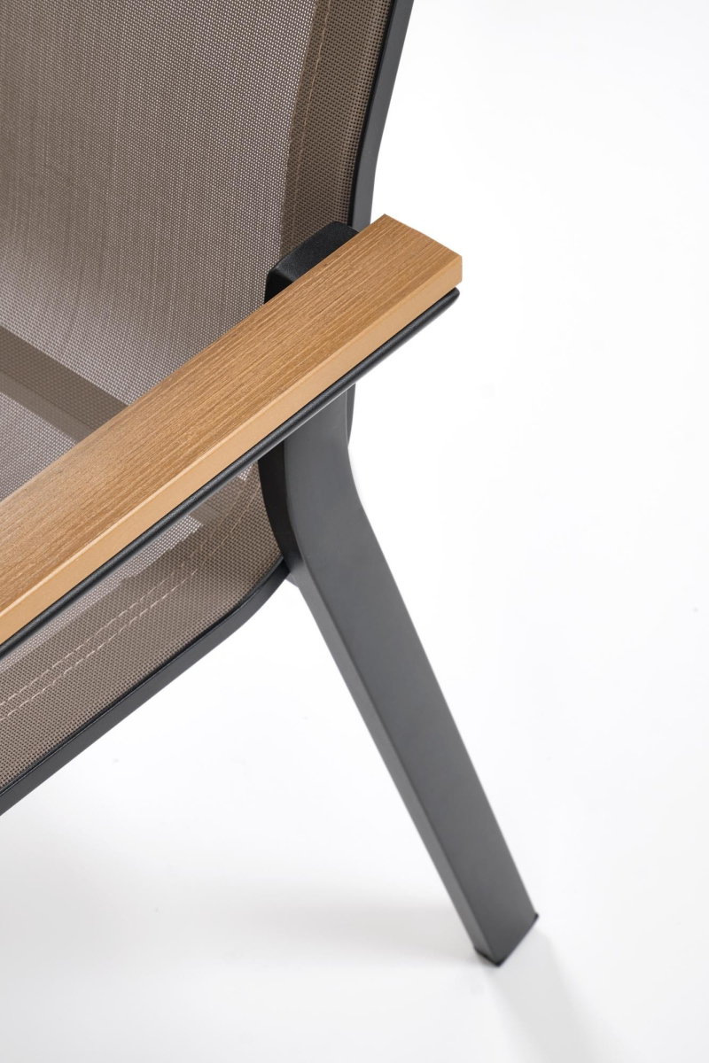 Dzięki ergonomicznej budowie, krzesło FIERRO zapewnia wysoki poziom komfortu, co czyni je idealnym do użytku wewnątrz oraz na zewnątrz. Jego lekka struktura ułatwia przestawianie, a jednocześnie zapewnia stabilność i odporność na niekorzystne warunki atmosferyczne. Dodatkowo, armresty w naturalnym kolorze drewna dodają mu wyjątkowego charakteru.