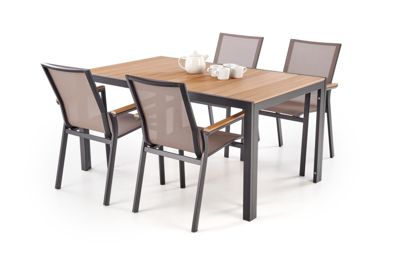 Przedstawiamy stół prostokątny FIERRO w eleganckim połączeniu brązu i czerni, który idealnie wkomponuje się w każdy nowoczesny wystrój. Jego minimalistyczny design oraz funkcjonalność sprawiają, że jest doskonałym wyborem zarówno do wnętrz, jak i na zewnątrz. Wymiary stołu wynoszą 150 cm długości, 90 cm szerokości i 74 cm wysokości, co zapewnia komfortowe miejsce dla rodziny i gości podczas posiłków oraz spotkań towarzyskich.