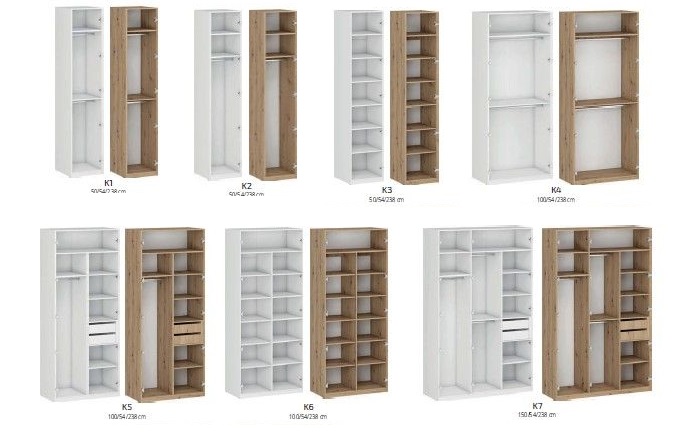 FORMO system szaf modułowych - KORPUS K5 dąb artisan Korpus K5 do SYSTEMU SZAF MODUŁOWYCH FORMO to idealne rozwiązanie dla osób poszukujących funkcjonalności oraz nowoczesnego designu w jednym. Wykonany z płyty meblowej laminowanej, zapewnia trwałość oraz odporność na uszkodzenia, co sprawia, że jest to inwestycja na lata. Styl dąb artisan nadaje mu wyjątkowego charakteru, łącząc naturalne akcenty z nowoczesnością. Wymiary: 100 cm szerokości x 54 cm głębokości x 238 cm wysokości Materiał: płyta meblowa laminowana, o wysokiej odporności na uszkodzenia i łatwej w pielęgnacji powierzchni Kolor: dąb artisan, który doskonale wpisuje się w różnorodne aranżacje wnętrz Funkcjonalność: pełny wysuw szuflady oraz liczne półki, które umożliwiają efektywne przechowywanie odzieży i dodatków Zawiasy: Ciche domykanie: Drzwi szaf wyposażone są w zawiasy z systemem cichego domykania, co zapewnia komfortowe i bezgłośne użytkowanie Modularność: możliwość łączenia z innymi elementami systemu FORMO, co pozwala na łatwe dostosowanie do indywidualnych potrzeb Ten nowoczesny korpus nie tylko ozdobi Twoje wnętrze, ale także ułatwi organizację przestrzeni. Dzięki starannemu wykonaniu i eleganckiemu wykończeniu, Korpus K5 stanie się sercem każdej garderoby czy przedpokoju. Niezależnie od stylu wnętrza, ten mebel doda mu wyjątkowego uroku i funkcjonalności. Gwarancja producenta: 24 miesiące Samodzielny montaż: produkt dostarczany z instrukcją montażu, co ułatwia szybkie i proste złożenie Dostawa: Oferujemy płatną usługę dostawy z wniesieniem. Prosimy o zaznaczenie tej opcji podczas składania zamówienia, aby cieszyć się komfortem bez dodatkowego wysiłku. Koszt usługi zostanie doliczony do zamówienia. Wykaz modułów systemu FORMO: System szaf modułowych FORMO - to system w którym możemy rodzaj i dobrać fronty, rodzaj uchwytów. Poniżej linki: Korpusy: Fronty Uchwyty