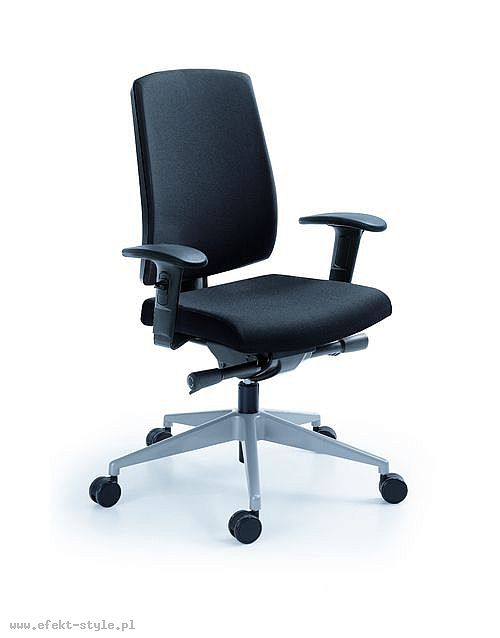 Fotel biurowy ERGOFIX TM06 szary Mechanizm Synchroniczny mechanizm ruchowy (Synchro SELF). Po zwolnieniu blokady, oparcie wychyla się w ruchu synchronicznym z siedziskiem naśladując ruch użytkownika w krześle. Wychylenie oparcia podążające za ruchem pleców użytkownika jest znacznie wyraźniejsze i szybsze aniżeli ruch siedziska. Siła oporu jaki stawia oparcie podczas wychylenia jest automatycznie dobrana do wagi Użytkownika - to funkcja "SELF" mechanizmu Synchro. Użytkownik w każdej chwili ma również możliwość blokady wybranej pozycji wychylenia oparcia i siedziska poprzez ruch dźwigni umieszczonej pod siedziskiem. Funkcja ANTI-Shock zapobiega gwałtownemu uderzeniu oparcia w plecy Użytkownika po zwolnieniu wybranej pozycji wychylenia. Siedzisko Tapicerowane tkaniną TM, która jest miła w dotyku, oddychająca, odporna na peeling i ścieralność ponad 35 tyś cykli Martindalea. Tkanina zapewnia dobra cyrkulację powietrza, jest łatwa w utrzymaniu czystości. Kolor tapicerki - szary. Oparcie Tapicerowane jest siatką, która dobrze dopasowuje się do pleców Użytkownika i zapewnia odpowiednią cyrkulację powietrze. Kolor siatki - szary. Wyposażone: w profil lędźwiowy o regulowanej wysokości, zagłówek o regulowanym kącie położenia, który pozwala na ergonomiczne podparcie głowy podczas pracy. Podłokietniki Regulowane w trzech płaszczyznach (3D): góra dół: pozwala na dostosowanie jego wysokości tak aby przedramię ułożone było pod kątem 90 stopni do tułowia, co znacznie odciąża mięśnie pleców podczas długiej pracy w pozycji siedzącej. Zakres regulacji wysokości podłokietnika to 6 cm; kąt położenia nakładki w zakresie +/- 15 stopni (skierowanie nakładek do wewnątrz siedziska ułatwia pisanie na klawiaturze, zaś ich skierowanie na zewnątrz ułatwia swobodne wstawanie z krzesła); przód - tył: regulacja nakładki podłokietnika przód/tył pozwala dostosować go do długości przedramienia; Podstawa Pięcioramienna czarna - nylonowa podstawa jezdna o lekkiej nowoczesnej stylistyce. Kółka miękkie: do powierzchni twardych tj. panele, glazura Wymiary Atest Atest Wytrzymałości i Bezpieczeństwa Użytkowania wydany przez PUR Remodex Zakład Badań i Wdrożeń Przemysłu Meblarskiego. Sposób przeprowadzenia badań wg: PN-EN 1335-1:2004 PN-EN 1335-2:2009 PN-EN 1335-3:2009 Zgodnie z atestem: ,,UWAGA: dopuszczalne maksymalne obciążenie siedziska - 150 kg". Gwarancja 24 miesiące.