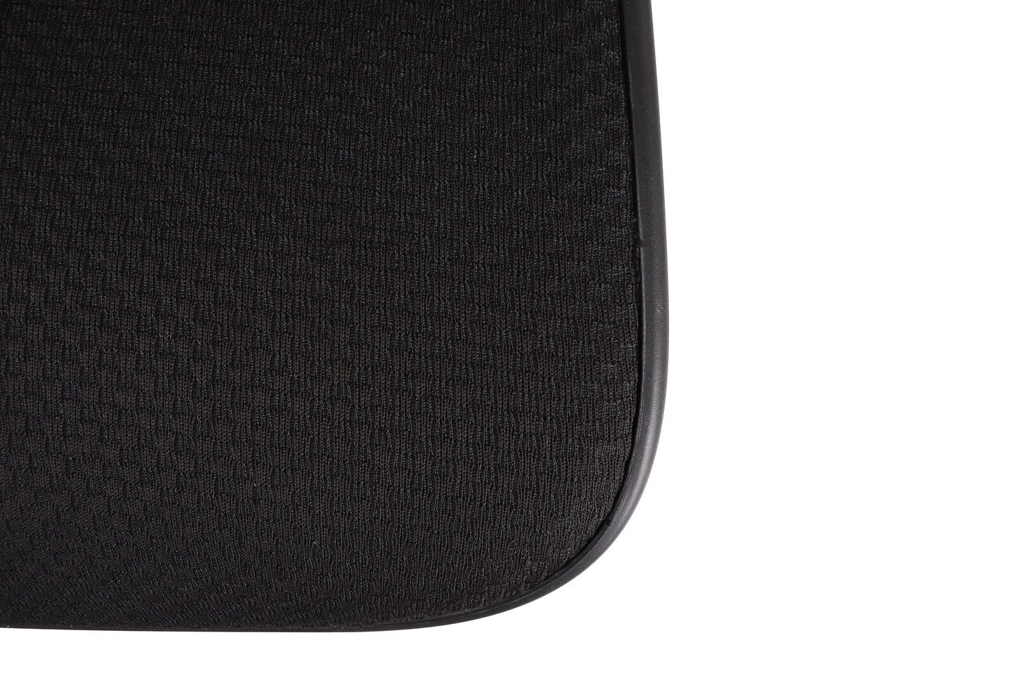 Oznaczenie BT: Czarny stelaż fotela. Czarna siatka na oparciu oraz zagłówku. Czarna tkanina na siedzisku.