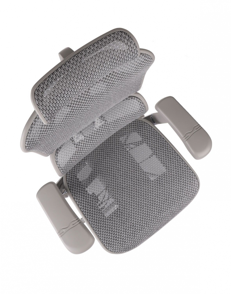Oznaczenie GS: Szary stelaż fotela. Oparcie siatka. Siedzisko siatka.