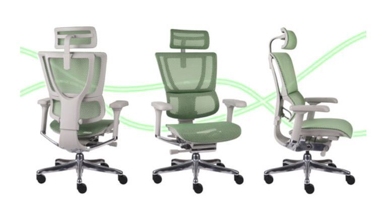 Fotel tapicerowany jest wysokiej jakości siatką, która posiada 10 stref o zróżnicowanym napięciu, tak by idealnie dopasować się do ciała Użytkownika.