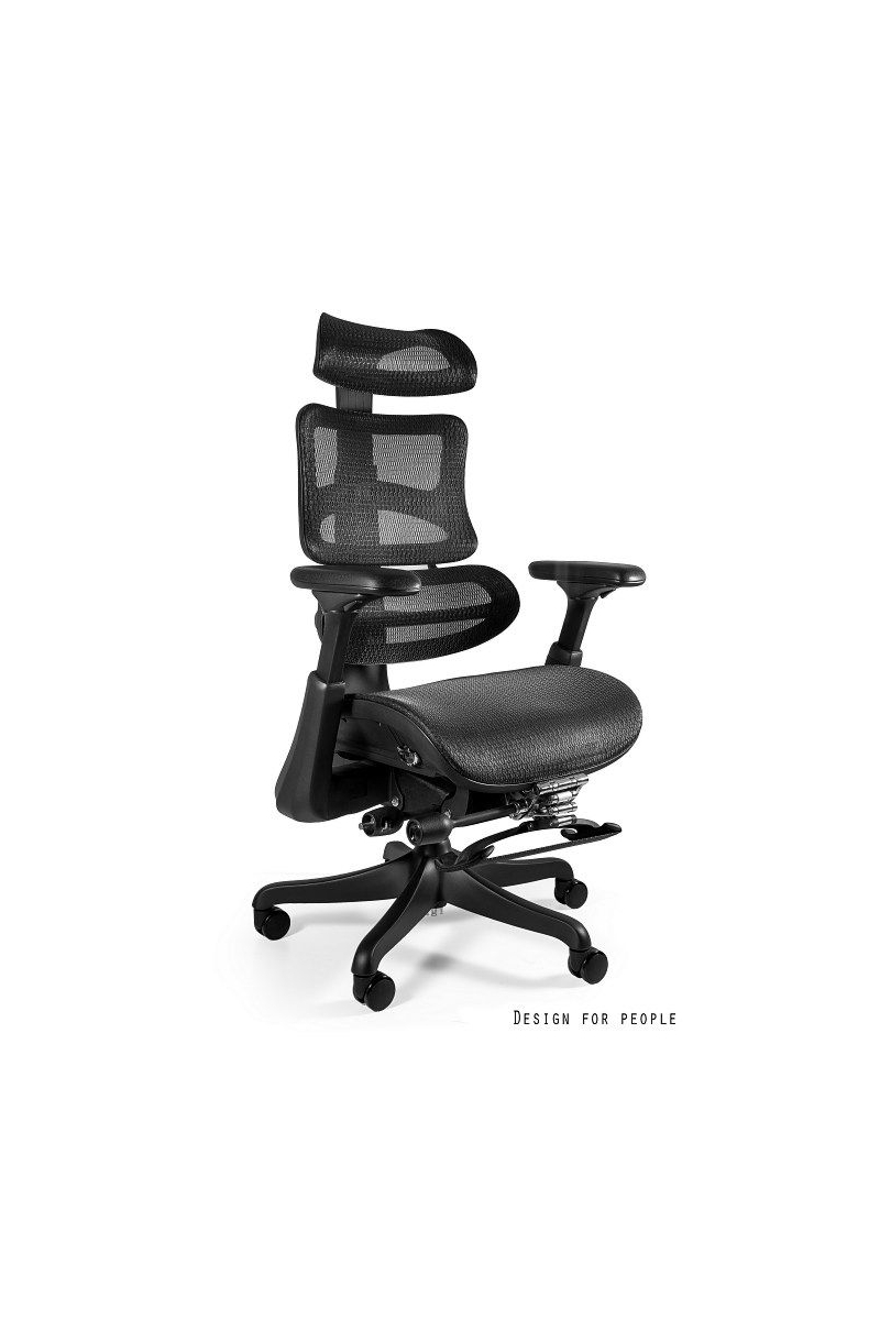Fotel biurowy obrotowy ErgoNew A1F siedzisko siatkowe z podnóżkiem Fotel biurowy ERGONEW A1F: Ergonomia, komfort, funkcjonalność i styl Fotele biurowe są nieodłącznym elementem wyposażenia każdego miejsca pracy. Wpływają one na nasze samopoczucie, wydajność i zdrowie podczas wielu godzin spędzonych przy biurku. Jeśli szukasz fotela, który zapewni Ci doskonałe wsparcie ergonomiczne, trwałość i estetykę, warto zwrócić uwagę na fotel biurowy obrotowy ERGONEW. Ten nowoczesny model łączy w sobie innowacyjne rozwiązania z wysokiej jakości materiałami, zapewniając niezrównany komfort i wygodę. Główne atuty fotela to: ✅ łatwa i intuicyjna obsługa mechanizmami fotela ✅ regulacja wysokości oparcia z podparciem lędźwiowym ✅ regulacja wysokości, odchyłu realizowana za pomocą przycisków przy siedzisku ✅ regulowany zagłówek 3D ✅ regulowane podłokietniki 3D Ponadto regulacja wysokości, odchyłu i wysuwu siedziska to kluczowe funkcje, które pozwalają dostosować fotel do indywidualnych preferencji użytkownika. W fotelu ERGONEW regulacja ta odbywa się za pomocą przycisków umiejscowionych przy siedzisku, co zapewnia wygodny i intuicyjny sposób dostosowywania pozycji siedzenia. Podsumowując: Fotel biurowy obrotowy ERGONEW to idealne rozwiązanie dla osób, które cenią sobie komfort, ergonomię i wysoką jakość wykonania. Dzięki jego zaawansowanym regulacjom i solidnej konstrukcji, zapewnia on optymalne wsparcie podczas długotrwałego siedzenia przy biurku. Wygodne siedzisko, regulowane podłokietniki, zagłówek i oparcie sprawiają, że praca staje się bardziej komfortowa i efektywna. Fotel ERGONEW to doskonały wybór dla wszystkich, którzy dbają o swoje zdrowie i dobre samopoczucie w miejscu pracy. Dane techniczne fotela biurowego ErgoNew A1F z podnóżkiem Oparcie ✅ wykonane z wytrzymałej siatki, zapewniającej przepływ powietrza, co wpływa na komfort pracy. ✅regulowane na wysokości - regulacja wysokości oparcia umożliwia dostosowanie go do krzywizny kręgosłupa, co pomaga utrzymać prawidłową postawę ciała. Kolor czarny Zagłówek ✅ regulowany zagłówek 3D, który umożliwia dopasowanie wysokości oraz nachylenia zagłówka do indywidualnych potrzeb. Dzięki temu można uzyskać optymalne podparcie dla szyi i głowy, co wpływa na komfort i redukcję napięcia mięśniowego. Podparcie Lędźwiowe Fotel ERGONEW został wyposażony w ✅ wyprofilowanie lędźwiowe z regulacją wysokości, która współpracuje z oparciem. Ta funkcja umożliwia dopasowanie podparcia dla kręgosłupa w okolicach odcinka lędźwiowego, co jest istotne dla zachowania prawidłowej postawy ciała i uniknięcia bólu pleców. Łącznik/rama oparcia Łącznik wykonany jest z aluminium Siedzisko wykonane z tkaniny siatkowej, zapewniającej przepływ powietrza, co wpływa na komfort pracy. Kolor czarny Podnóżek Wysuwany podnóżek Wysuw siedziska Fotel posiada: ✅ funkcję wysuwu siedziska, która umożliwia dostosowanie głębokości siedziska do długości ud. To szczególnie istotne dla osób o różnej wysokości ciała, które chcą uzyskać optymalne podparcie dla ud i zapewnić odpowiednią krążenie krwi. Mechanizm synchroniczny ✅ 4-pozycyjny mechanizm synchro z funkcją "anti-shock" zapewnia płynne przemieszczanie się oparcia bez uderzenia w plecy po zwolnieniu blokady. Możliwość regulacji siły oporu mechanizmu synchro pozwala dostosować fotel do indywidualnych preferencji. Regulacja wysokości i odchyłu odbywa się za pomocą przycisków umiejscowionych przy siedzisku Podłokietniki Regulowane podłokietniki 3D to kolejny atut fotela ERGONEW. ✅ Możliwość regulacji: - góra - dół - przesuw nakładki przód - tył - kąt obrotu nakładki podłokietników pozwala na dostosowanie ich do indywidualnych preferencji i zapewnienie odpowiedniego wsparcia dla ramion i nadgarstków. Miękkie nakładki zapewniają dodatkowy komfort podczas korzystania z fotela przez dłuższy czas. Podnośnik ✅ Podnośnik klasy 4 to gwarancja niezawodności i płynnej regulacji wysokości siedziska. Dzięki tej funkcji można dostosować wysokość siedziska do swojego biurka. Podstawa/kółka Podstawa fotela wykonana z aluminium kółka miękkie fi 60 mm przystosowane do powierzchni twardych Atest Gwarancją jakości fotela jest ✅ ATEST wytrzymałościowy w zakresie bezpieczeństwa użytkowania, zgodność z normami: PN-EN 1335-2:2019-03, PN-EN 1728:2012/AC:2013 PN-EN 1022:2024-04 max obciązenie siedziska - 150 kg Montaż Do samodzielnego montażu , instrukcja dołączona do przesyłki. Gwarancja 24 miesiące Wymiary Wysokość całkowita bez zagłówka 106-115 cm Wysokość położenia siedziska 49 - 58 cm Wysokość oparcia regulowane w zakresie + 5 cm Szerokość siedziska 50 cm Podstawa fi 70 cm UWAGA: Podane wymiary magą różnić się o +/- 1-2 cm. Poniżej przedstawiamy tabele porównawczą foteli biurowych z serii ErgoNew: funkcje/model ErgoNew A1 ErgoNew A1 F ErgoNew S1 ErgoNew S1A ErgoNew S7 ErgoNew S8 Regulacja zagłówka 3D 3D 3D 3D Góra-dół 2D Regulacja podłokietników 3D 3D 3D 3D 3D 3D Regulacja wysokości oparcia tak tak tak tak tak tak Wysuw siedziska tak tak nie tak tak tak Rodzaj podstawy aluminium aluminium nylon aluminium aluminium aluminium Kółka miękkie Tak/60 mm Tak/60 mm Tak/60 mm Tak/65 mm Tak/65 mm Tak/65 mm Łącznik oparcia – wykonanie aluminium aluminium metal metal aluminium aluminium Rama oparcia aluminium aluminium nylon nylon nylon aluminium Korpus podłokietnika metal metal aluminium aluminium Zobacz pozostałe modele z tej serii: