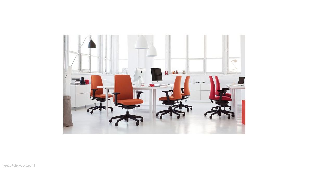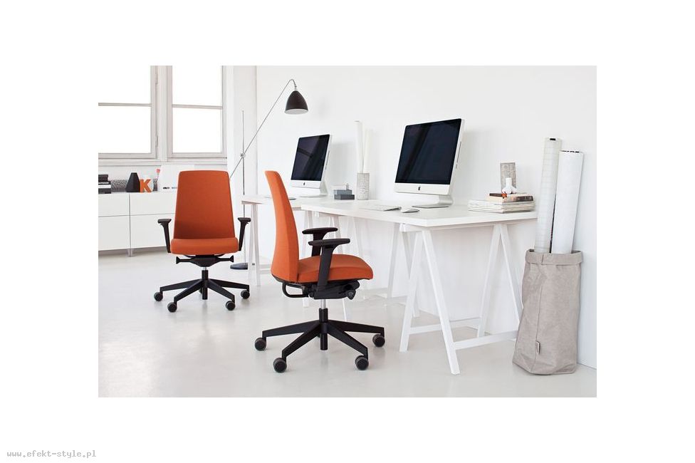 Prosty design krzesła obrotowego Motto przełamuje subtelny łuk oparcia. | |