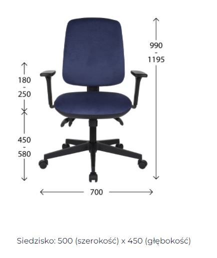 Fotel Biurowy Obrotowy RIVERTON M/H-ALU czarny Fotel biurowy obrotowy z regulowanym zagłówkiem oraz z wysuwem siedziska w bardzo atrakcyjnej cenie. Wyposażony w dużą ilość ergonomicznych funkcji, które gwarantują komfortowe i wygodne użytkowanie. Czy funkcje fotela RIVERTON mogą być dla Ciebie przydatne? Koniecznie zobacz i zapoznaj się z opisem, a wówczas zapewne odpowiedź będzie twierdząca Dane techniczne fotela RIVERTON Długie oparcie zapewnia optymalną podporę dla całego kręgosłupa. Siedzisko tapicerowane gąbką o dużej gęstości. Oparcie tapicerowane tkaniną siatkową. Istotnym elementem oparcia jest regulowane podparcie lędźwiowe, które podpiera newralgiczny odcinek kręgosłupa. Mechanizm synchroniczny umożliwia blokadę odchyłu w kilku pozycjach. Fotel posiada czarny, wytrzymały podnośnik klasy 4, dzięki któremu możesz wyregulować wysokość siedziska. Podłokietniki czarne, regulowane (góra-dół oraz przód-tył) z miękkimi (poliuretanowymi) nakładkami. Stabilna podstawa aluminiowa o wymiarze 68 cm gwarantuje stabilność fotela. Podstawa wyprodukowana została z wysokiej klasy materiału zakończona kółkami do powierzchni twardych typu glazura, parkiet, które chronią podłoże przed zarysowaniami. ATESTY: Gwarancją jakości fotela jest ATEST wytrzymałościowy w zakresie bezpieczeństwa użytkowania, zgodność z normami: PN-EN 1335-1:2004, PN-EN 1335-2:2019, PN-EN 1728:2012/AC:2013, PN-EN 1022:2019 która uprawnia do stosowania fotela biurowego na stanowiskach komputerowych Dopuszczalne maksymalne obciążenie siedziska – 150 kg. ✅ Protokół Oceny Ergonomicznej, która uprawnia do stosowania fotela biurowego na stanowiskach komputerowych A teraz zapoznaj się z wymiarami fotela Prezentowany model RIVERTON oferowany jest w kolorze czarnym na oparciu i siedzisku.Czy montaż fotela jest trudny ?absolutnie nie, ponieważ do każdego egzemplarza fotela dołączona jest w paczce instrukcja montażu oraz wszystkie elementyGwarancja 24 miesiące - dla Państwa pełnego komfortu w systemie od "drzwi do drzwi" System "door to door" - z ang - od drzwi do drzwi Termin "door to door" wg WIKIPEDII: " sposób realizacji naprawy urządzenia, który polega na przesłaniu pocztą kurierską uszkodzonego sprzętu do serwisu (na koszt serwisu). Naprawione urządzenie wraca następnie przesyłką kurierską do właściciela także na koszt serwisu" Fotel przeznaczony jest, zgodnie z obowiązującą normą PN-EN 1335-2:2009 (Meble biurowe. Krzesło biurowe do pracy. Część 2: wymagania bezpieczeństwa).. Detale fotela obrotowego: Podłokietniki: Mechanizm synchroniczny: Podparcie lędźwiowe: Pozostałe szczegóły: Jeżeli ten kolor fotela Tobie nie odpowiada to nic straconego, bo w naszej ofercie mamy jeszcze fotele RIVERTON w kolorze szarym na oparciu. ZOBACZ bo warto!