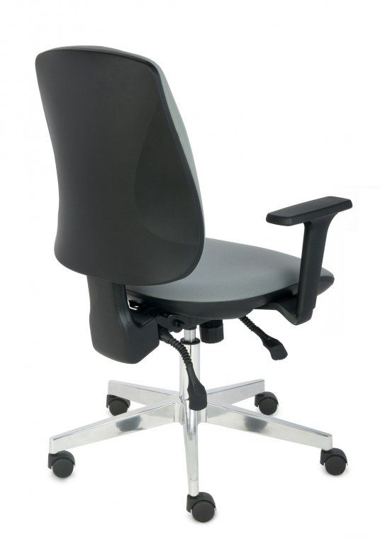 Fotel biurowy ERGOFIX TM06 szary Mechanizm Synchroniczny mechanizm ruchowy (Synchro SELF). Po zwolnieniu blokady, oparcie wychyla się w ruchu synchronicznym z siedziskiem naśladując ruch użytkownika w krześle. Wychylenie oparcia podążające za ruchem pleców użytkownika jest znacznie wyraźniejsze i szybsze aniżeli ruch siedziska. Siła oporu jaki stawia oparcie podczas wychylenia jest automatycznie dobrana do wagi Użytkownika - to funkcja "SELF" mechanizmu Synchro. Użytkownik w każdej chwili ma również możliwość blokady wybranej pozycji wychylenia oparcia i siedziska poprzez ruch dźwigni umieszczonej pod siedziskiem. Funkcja ANTI-Shock zapobiega gwałtownemu uderzeniu oparcia w plecy Użytkownika po zwolnieniu wybranej pozycji wychylenia. Siedzisko Tapicerowane tkaniną TM, która jest miła w dotyku, oddychająca, odporna na peeling i ścieralność ponad 35 tyś cykli Martindalea. Tkanina zapewnia dobra cyrkulację powietrza, jest łatwa w utrzymaniu czystości. Kolor tapicerki - szary. Oparcie Tapicerowane jest siatką, która dobrze dopasowuje się do pleców Użytkownika i zapewnia odpowiednią cyrkulację powietrze. Kolor siatki - szary. Wyposażone: w profil lędźwiowy o regulowanej wysokości, zagłówek o regulowanym kącie położenia, który pozwala na ergonomiczne podparcie głowy podczas pracy. Podłokietniki Regulowane w trzech płaszczyznach (3D): góra dół: pozwala na dostosowanie jego wysokości tak aby przedramię ułożone było pod kątem 90 stopni do tułowia, co znacznie odciąża mięśnie pleców podczas długiej pracy w pozycji siedzącej. Zakres regulacji wysokości podłokietnika to 6 cm; kąt położenia nakładki w zakresie +/- 15 stopni (skierowanie nakładek do wewnątrz siedziska ułatwia pisanie na klawiaturze, zaś ich skierowanie na zewnątrz ułatwia swobodne wstawanie z krzesła); przód - tył: regulacja nakładki podłokietnika przód/tył pozwala dostosować go do długości przedramienia; Podstawa Pięcioramienna czarna - nylonowa podstawa jezdna o lekkiej nowoczesnej stylistyce. Kółka miękkie: do powierzchni twardych tj. panele, glazura Wymiary Atest Atest Wytrzymałości i Bezpieczeństwa Użytkowania wydany przez PUR Remodex Zakład Badań i Wdrożeń Przemysłu Meblarskiego. Sposób przeprowadzenia badań wg: PN-EN 1335-1:2004 PN-EN 1335-2:2009 PN-EN 1335-3:2009 Zgodnie z atestem: ,,UWAGA: dopuszczalne maksymalne obciążenie siedziska - 150 kg". Gwarancja 24 miesiące.