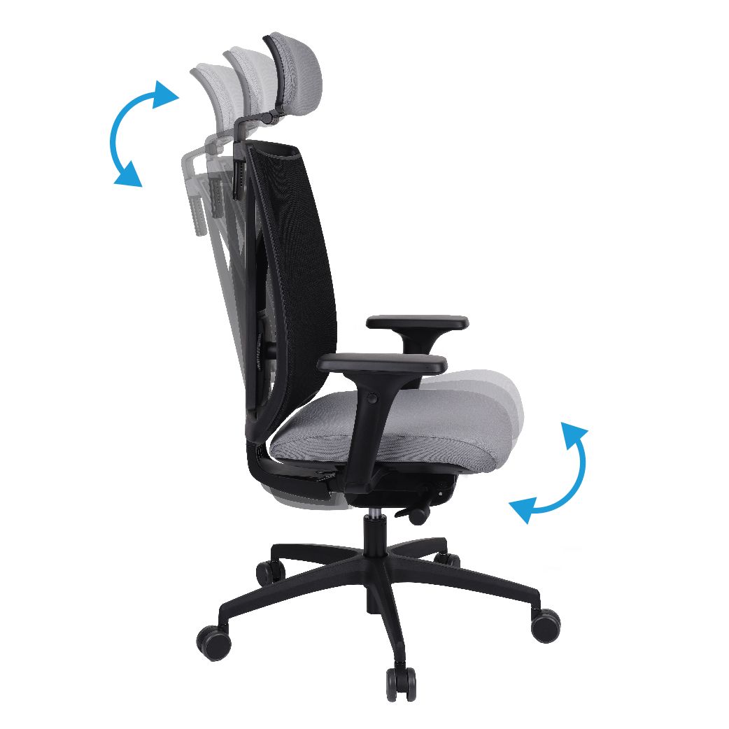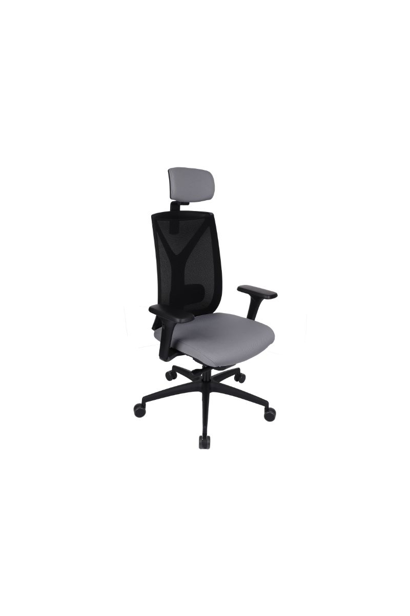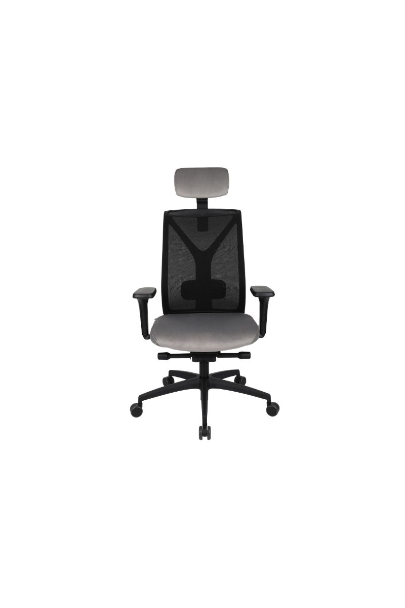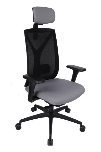 Fotel biurowy ERGOFIX TM06 szary Mechanizm Synchroniczny mechanizm ruchowy (Synchro SELF). Po zwolnieniu blokady, oparcie wychyla się w ruchu synchronicznym z siedziskiem naśladując ruch użytkownika w krześle. Wychylenie oparcia podążające za ruchem pleców użytkownika jest znacznie wyraźniejsze i szybsze aniżeli ruch siedziska. Siła oporu jaki stawia oparcie podczas wychylenia jest automatycznie dobrana do wagi Użytkownika - to funkcja "SELF" mechanizmu Synchro. Użytkownik w każdej chwili ma również możliwość blokady wybranej pozycji wychylenia oparcia i siedziska poprzez ruch dźwigni umieszczonej pod siedziskiem. Funkcja ANTI-Shock zapobiega gwałtownemu uderzeniu oparcia w plecy Użytkownika po zwolnieniu wybranej pozycji wychylenia. Siedzisko Tapicerowane tkaniną TM, która jest miła w dotyku, oddychająca, odporna na peeling i ścieralność ponad 35 tyś cykli Martindalea. Tkanina zapewnia dobra cyrkulację powietrza, jest łatwa w utrzymaniu czystości. Kolor tapicerki - szary. Oparcie Tapicerowane jest siatką, która dobrze dopasowuje się do pleców Użytkownika i zapewnia odpowiednią cyrkulację powietrze. Kolor siatki - szary. Wyposażone: w profil lędźwiowy o regulowanej wysokości, zagłówek o regulowanym kącie położenia, który pozwala na ergonomiczne podparcie głowy podczas pracy. Podłokietniki Regulowane w trzech płaszczyznach (3D): góra dół: pozwala na dostosowanie jego wysokości tak aby przedramię ułożone było pod kątem 90 stopni do tułowia, co znacznie odciąża mięśnie pleców podczas długiej pracy w pozycji siedzącej. Zakres regulacji wysokości podłokietnika to 6 cm; kąt położenia nakładki w zakresie +/- 15 stopni (skierowanie nakładek do wewnątrz siedziska ułatwia pisanie na klawiaturze, zaś ich skierowanie na zewnątrz ułatwia swobodne wstawanie z krzesła); przód - tył: regulacja nakładki podłokietnika przód/tył pozwala dostosować go do długości przedramienia; Podstawa Pięcioramienna czarna - nylonowa podstawa jezdna o lekkiej nowoczesnej stylistyce. Kółka miękkie: do powierzchni twardych tj. panele, glazura Wymiary Atest Atest Wytrzymałości i Bezpieczeństwa Użytkowania wydany przez PUR Remodex Zakład Badań i Wdrożeń Przemysłu Meblarskiego. Sposób przeprowadzenia badań wg: PN-EN 1335-1:2004 PN-EN 1335-2:2009 PN-EN 1335-3:2009 Zgodnie z atestem: ,,UWAGA: dopuszczalne maksymalne obciążenie siedziska - 150 kg". Gwarancja 24 miesiące.