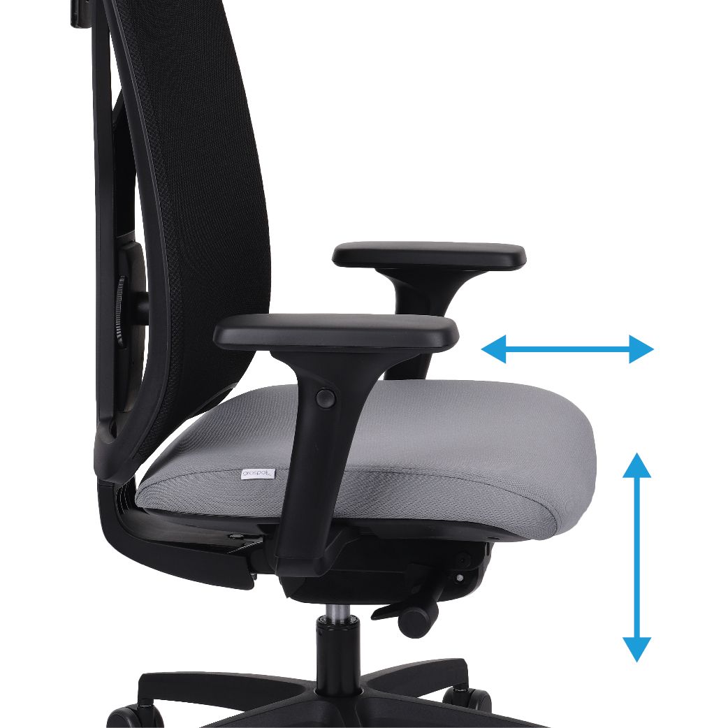 Siedzisko w fotelach VALIO posiada funkcję regulacji głębokości (odległości od oparcia), co pozwala w pełni korzystać z ergonomicznych funkcji oparcia, a także eliminuje ucisk na uda bez względu na wzrost użytkownika.