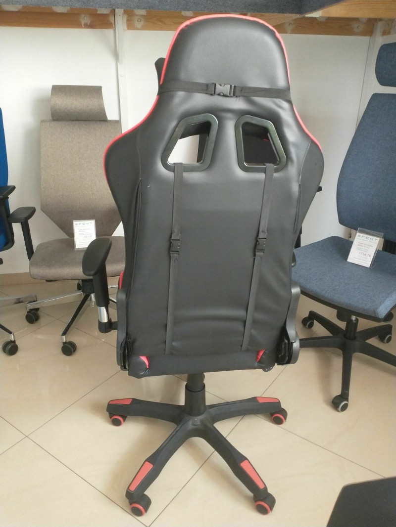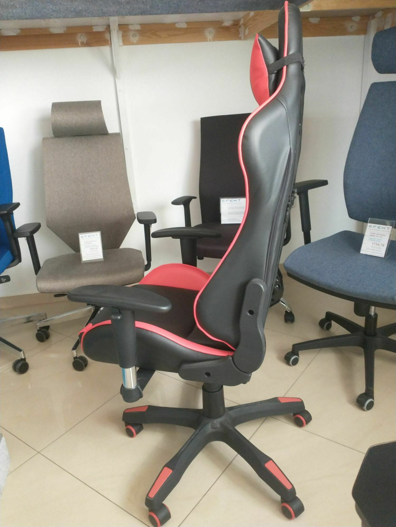 Fotel obrotowy RYDER EXTREMEZobacz prezentację tego modelu Poniżej przedstawiamy Państwu nowoczesny model fotela obrotowego.Jest to ergonomiczny fotel obrotowy, zaprojektowany z myślą o osobach, które bardzo dużo czasu spędzają przy komputerze.Fotel stylizowany kolorystycznie dla osób lubiących gry komputerowe w kolorze czarnym z delikatnymi czerwonymi wstawkami.Fotel obrotowy RYDER posiada mechanizm synchroniczny, regulowane podłokietniki, zagłówek, czyli wszystkie cechy, które powinien mieć obrotowy fotel ergonomiczny. Fotel biurowy obrotowy RYDER posiada CEERTYFIKATY: atest badań wytrzymałościowych w zakresie bezpieczeństwa użytkowania,Badania zostały przeprowadzone wg norm:PN-EN 1335-1:2004PN-EN 1333-2:2019PN-EN 1728:2012/ AC:2013PN-EN 1022:2019 atest odporności tkaniny na ścieranie i pilling atest odporności tkaniny na zapalenieDopuszczalne maksymalne obciążenie siedziska - 150 kgZapraszam do szczegółowego zapoznania się z tym modelem: Szczegółowy opis fotela RYDER EXTREME:Mechanizm synchroniczny: wyposażony w blokadę odchyłu mechanizm samoważący - bardzo przydatna funkcja, która oznacza, że mechanizm sam dostosowuje wagę użytkownika do siły oporu oparcia. anti-shock - po zwolnieniu blokady, oparcie fotela nie uderzy Cię w plecy - fajnie nie :)Regulacja wysuwu siedziska funkcja ta umożliwia wysunięcie siedziska w zakresie 5 cm - co to oznacza? Jest to bardzo przydatna funkcja, która umożliwia taką regulację głębokości siedziska, aby użytkownik przyjął ergonomiczną pozycję w trakcie wykonywania pracy.Wysokość siedziska płynna regulacja wysokości siedziska w zakresie 48-56 cmPodłokietniki - regulowane regulacja góra - dół w zakresie 8 cm miękkie nakładki (poliuretanowe)Odcinek Lędźwiowy - regulowanyRegulacja umiejscowiona jest na boku oparcia, dzięki czemu w bardzo prosty sposób możemy dopasować podparcie lędźwiowe za pomoca suwaka, nie wstawając z fotela. Siedzisko fotela wykonane z grubej pianki,tapicerowane tkaniną o ścieralności 90 tys. Martindale'a. Pianka wysokoelastyczna o dużej gęstości zapewni wieloletnie użytkowanie i zadowalenie użytkownika. siedzisko w kolorze czarnym z wstawkami czerwonymiOparcie fotela wykonane z wysokoelastycznego materiału. zatapicerowane siatką o dużej wytrzymałości, o ścieralności 80 tys. Martindale'a wykończone wstawkami czarno - czerwonymi na bokach oparcie zostało wyposażone w szeroki zagłówek, zatapicerowany przewiewną siatką, zapewniajacą dobrą regulację powietrza. wysokie oparcie pozwoli na dobre dopasowanie pleców podczas pracyPodstawa fotela stabilna o średnicy 68 cm wykonana z wysokiej jakości tworzywa w kolorze czarnym duże kółka miękkie do powierzchni twardej (np. panele) o średnicy 6 cmWymiary fotela