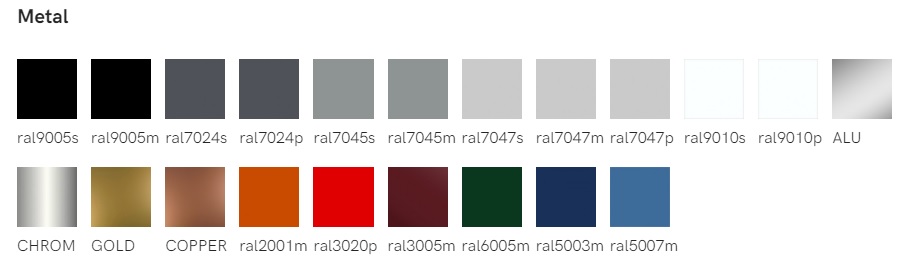 | Kolor: | czarny, beżowy, popielaty-szary-grafitowy, biały, zielony, żółty-złoty, pomarańczowy, czerwony, fioletowy, niebieski, brązowy, różowy |