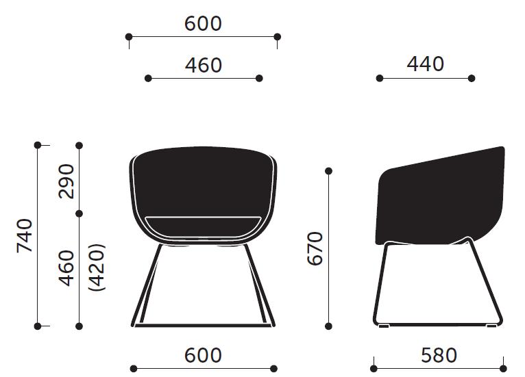 KUBEŁEK: | Metalowy stelaż; pianka poliuretanowa wylewana - gęstość 85 kg/m3 dla kubełka i 70 kg/m3 dla poduszki siedziska. |