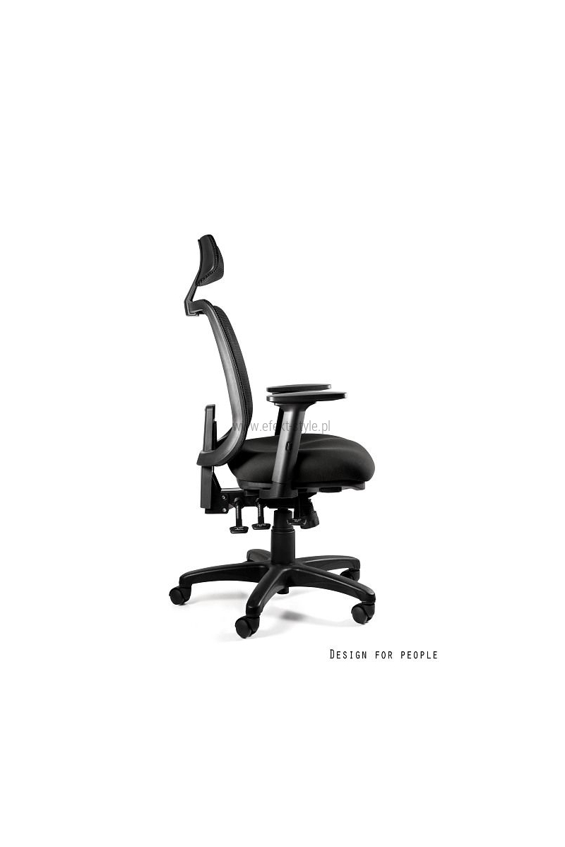 Fotel biurowy obrotowy ErgoNew A1F siedzisko siatkowe z podnóżkiem Fotel biurowy ERGONEW A1F: Ergonomia, komfort, funkcjonalność i styl Fotele biurowe są nieodłącznym elementem wyposażenia każdego miejsca pracy. Wpływają one na nasze samopoczucie, wydajność i zdrowie podczas wielu godzin spędzonych przy biurku. Jeśli szukasz fotela, który zapewni Ci doskonałe wsparcie ergonomiczne, trwałość i estetykę, warto zwrócić uwagę na fotel biurowy obrotowy ERGONEW. Ten nowoczesny model łączy w sobie innowacyjne rozwiązania z wysokiej jakości materiałami, zapewniając niezrównany komfort i wygodę. Główne atuty fotela to: ✅ łatwa i intuicyjna obsługa mechanizmami fotela ✅ regulacja wysokości oparcia z podparciem lędźwiowym ✅ regulacja wysokości, odchyłu realizowana za pomocą przycisków przy siedzisku ✅ regulowany zagłówek 3D ✅ regulowane podłokietniki 3D Ponadto regulacja wysokości, odchyłu i wysuwu siedziska to kluczowe funkcje, które pozwalają dostosować fotel do indywidualnych preferencji użytkownika. W fotelu ERGONEW regulacja ta odbywa się za pomocą przycisków umiejscowionych przy siedzisku, co zapewnia wygodny i intuicyjny sposób dostosowywania pozycji siedzenia. Podsumowując: Fotel biurowy obrotowy ERGONEW to idealne rozwiązanie dla osób, które cenią sobie komfort, ergonomię i wysoką jakość wykonania. Dzięki jego zaawansowanym regulacjom i solidnej konstrukcji, zapewnia on optymalne wsparcie podczas długotrwałego siedzenia przy biurku. Wygodne siedzisko, regulowane podłokietniki, zagłówek i oparcie sprawiają, że praca staje się bardziej komfortowa i efektywna. Fotel ERGONEW to doskonały wybór dla wszystkich, którzy dbają o swoje zdrowie i dobre samopoczucie w miejscu pracy. Dane techniczne fotela biurowego ErgoNew A1F z podnóżkiem Oparcie ✅ wykonane z wytrzymałej siatki, zapewniającej przepływ powietrza, co wpływa na komfort pracy. ✅regulowane na wysokości - regulacja wysokości oparcia umożliwia dostosowanie go do krzywizny kręgosłupa, co pomaga utrzymać prawidłową postawę ciała. Kolor czarny Zagłówek ✅ regulowany zagłówek 3D, który umożliwia dopasowanie wysokości oraz nachylenia zagłówka do indywidualnych potrzeb. Dzięki temu można uzyskać optymalne podparcie dla szyi i głowy, co wpływa na komfort i redukcję napięcia mięśniowego. Podparcie Lędźwiowe Fotel ERGONEW został wyposażony w ✅ wyprofilowanie lędźwiowe z regulacją wysokości, która współpracuje z oparciem. Ta funkcja umożliwia dopasowanie podparcia dla kręgosłupa w okolicach odcinka lędźwiowego, co jest istotne dla zachowania prawidłowej postawy ciała i uniknięcia bólu pleców. Łącznik/rama oparcia Łącznik wykonany jest z aluminium Siedzisko wykonane z tkaniny siatkowej, zapewniającej przepływ powietrza, co wpływa na komfort pracy. Kolor czarny Podnóżek Wysuwany podnóżek Wysuw siedziska Fotel posiada: ✅ funkcję wysuwu siedziska, która umożliwia dostosowanie głębokości siedziska do długości ud. To szczególnie istotne dla osób o różnej wysokości ciała, które chcą uzyskać optymalne podparcie dla ud i zapewnić odpowiednią krążenie krwi. Mechanizm synchroniczny ✅ 4-pozycyjny mechanizm synchro z funkcją "anti-shock" zapewnia płynne przemieszczanie się oparcia bez uderzenia w plecy po zwolnieniu blokady. Możliwość regulacji siły oporu mechanizmu synchro pozwala dostosować fotel do indywidualnych preferencji. Regulacja wysokości i odchyłu odbywa się za pomocą przycisków umiejscowionych przy siedzisku Podłokietniki Regulowane podłokietniki 3D to kolejny atut fotela ERGONEW. ✅ Możliwość regulacji: - góra - dół - przesuw nakładki przód - tył - kąt obrotu nakładki podłokietników pozwala na dostosowanie ich do indywidualnych preferencji i zapewnienie odpowiedniego wsparcia dla ramion i nadgarstków. Miękkie nakładki zapewniają dodatkowy komfort podczas korzystania z fotela przez dłuższy czas. Podnośnik ✅ Podnośnik klasy 4 to gwarancja niezawodności i płynnej regulacji wysokości siedziska. Dzięki tej funkcji można dostosować wysokość siedziska do swojego biurka. Podstawa/kółka Podstawa fotela wykonana z aluminium kółka miękkie fi 60 mm przystosowane do powierzchni twardych Atest Gwarancją jakości fotela jest ✅ ATEST wytrzymałościowy w zakresie bezpieczeństwa użytkowania, zgodność z normami: PN-EN 1335-2:2019-03, PN-EN 1728:2012/AC:2013 PN-EN 1022:2024-04 max obciązenie siedziska - 150 kg Montaż Do samodzielnego montażu , instrukcja dołączona do przesyłki. Gwarancja 24 miesiące Wymiary Wysokość całkowita bez zagłówka 106-115 cm Wysokość położenia siedziska 49 - 58 cm Wysokość oparcia regulowane w zakresie + 5 cm Szerokość siedziska 50 cm Podstawa fi 70 cm UWAGA: Podane wymiary magą różnić się o +/- 1-2 cm. Poniżej przedstawiamy tabele porównawczą foteli biurowych z serii ErgoNew: funkcje/model ErgoNew A1 ErgoNew A1 F ErgoNew S1 ErgoNew S1A ErgoNew S7 ErgoNew S8 Regulacja zagłówka 3D 3D 3D 3D Góra-dół 2D Regulacja podłokietników 3D 3D 3D 3D 3D 3D Regulacja wysokości oparcia tak tak tak tak tak tak Wysuw siedziska tak tak nie tak tak tak Rodzaj podstawy aluminium aluminium nylon aluminium aluminium aluminium Kółka miękkie Tak/60 mm Tak/60 mm Tak/60 mm Tak/65 mm Tak/65 mm Tak/65 mm Łącznik oparcia – wykonanie aluminium aluminium metal metal aluminium aluminium Rama oparcia aluminium aluminium nylon nylon nylon aluminium Korpus podłokietnika metal metal aluminium aluminium Zobacz pozostałe modele z tej serii:
