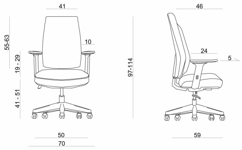 zdjęcia mechanizm synchroniczny MS-APROM-SY Specyfikacja mechanizmu: -mechanizm rozłączny - osobno mechanizm, osobno łącznik oparcia -zsynchronizowana regulacja kąta pochylenia oparcia i siedziska, za pomocą jednej dźwigni/przycisku (zakres pochylenia siedzisko: -1°/+10°; oparcie: 20°) -regulacja natężenia za pomocą pokrętła dolnego -regulacja kolumny gazowej, za pomocą dźwigni/przycisku -możliwość korzystania z mechanizmu w pozycji nie zablokowanej i zablokowanej -blokowanie w 5 pozycjach -antishock - ochrona pleców przed uderzeniem oparcia po zwolnieniu blokady -przesuw siedziska - zewnętrzny (opcja za dopłatą) podłokietniki Do wyboru: regulowane góra - dół miękka nakładka czarne lub regulacja góra-dół w zakresie 75mm przesuw nakładki przód-tył w zakresie 60mm obrót nakładki +/- 30 stopni podstawa Do wyboru: czarna z tworzywa aluminiowa Kółka: twarde do powierzchni miękkich - standard miękkie do powierzchni twardych (dopłata) Oparcie i siedzisko Oparcie i siedzisko wyprofilowane, wykonane z pianki integralnej. Oparcie zostało wyposażone w regulacje: oparcie regulowane na wysokości, podparcie lędźwiowe regulowane w wysokości które umożliwiaja dopasowanie fotela do naszej sylwetki. Siedzisko i oparcie: tapicerowane wg wzornika. tapicerki/siatki oznaczone gwiazdką (*) - wymagają indywidualnego ustalenia minimalnej ilości zamawianych foteli. zagłówek Model fotela dostepny w wersji: bez zagłówka - standard(A) z zagłówkiem stałym - za dopłatą(T) Do wyboru w KONFIGURATORZE Wymiary Fotel APOLLO bez zagłówka Fotel APOLLO z zagłówkiem Atest Fotel posiada Atest badań wytrzymałościowych i bezpieczeństwa użytkowania przez ludzi o masie do 150 kg Montaż Do samadzielnego montażu