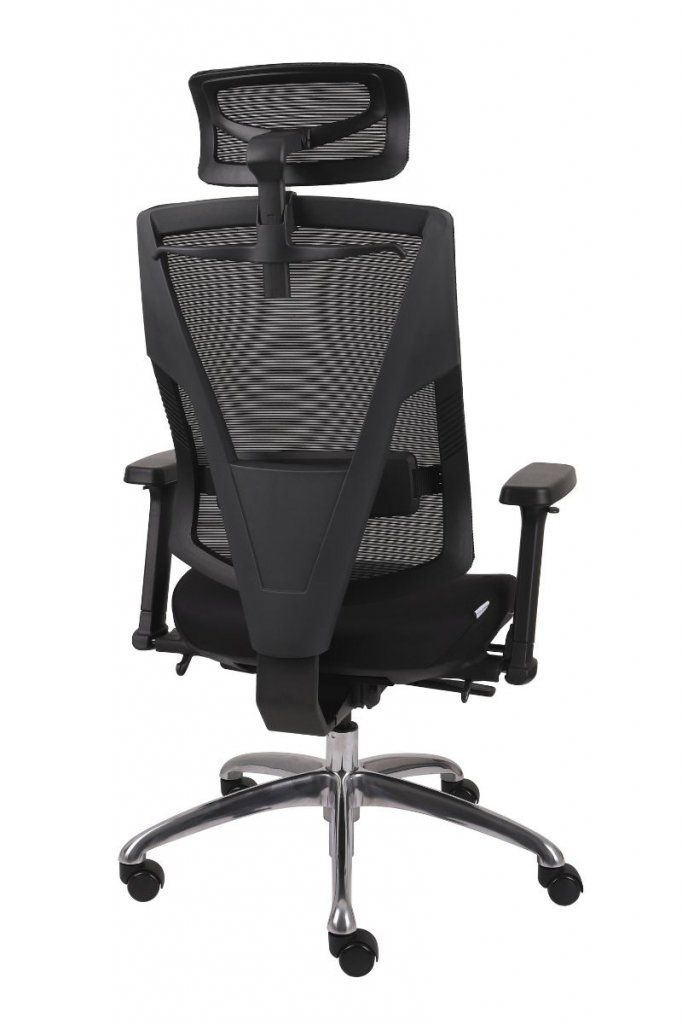 FOTEL OBROTOWY ERGOTHRONE Z PODNÓŻKIEM / CZARNY Dane techniczne: Zagłówek, oparcie i siedzisko tapicerowane wysokiej jakości siatką Mechanizm samoważący SYNCHRON Regulowane podłokietniki góra-dół, przód-tył, wychylenie na boki Regulowana wysokość oparcia i zagłówka Regulowana wysokość oparcia dla kręgów lędźwiowych Podstawa jezdna wykonana z lakierowanego aluminium w kolorze czarnym Fotel wyposażony w wygodny podnóżek (maksymalne obciążenie podnóżka do 45 kg) kolorystyka czarny Wymiary: Obciążenie 130 kg Gwarancja: 3 lata