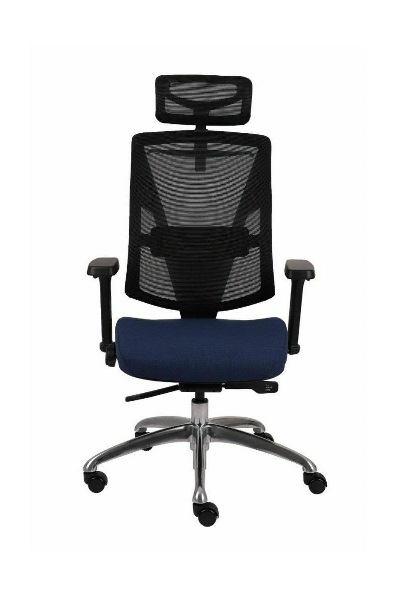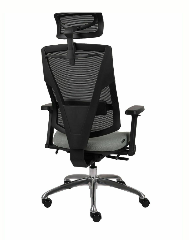 Fotel biurowy ERGOFIX TM06 szary Mechanizm Synchroniczny mechanizm ruchowy (Synchro SELF). Po zwolnieniu blokady, oparcie wychyla się w ruchu synchronicznym z siedziskiem naśladując ruch użytkownika w krześle. Wychylenie oparcia podążające za ruchem pleców użytkownika jest znacznie wyraźniejsze i szybsze aniżeli ruch siedziska. Siła oporu jaki stawia oparcie podczas wychylenia jest automatycznie dobrana do wagi Użytkownika - to funkcja "SELF" mechanizmu Synchro. Użytkownik w każdej chwili ma również możliwość blokady wybranej pozycji wychylenia oparcia i siedziska poprzez ruch dźwigni umieszczonej pod siedziskiem. Funkcja ANTI-Shock zapobiega gwałtownemu uderzeniu oparcia w plecy Użytkownika po zwolnieniu wybranej pozycji wychylenia. Siedzisko Tapicerowane tkaniną TM, która jest miła w dotyku, oddychająca, odporna na peeling i ścieralność ponad 35 tyś cykli Martindalea. Tkanina zapewnia dobra cyrkulację powietrza, jest łatwa w utrzymaniu czystości. Kolor tapicerki - szary. Oparcie Tapicerowane jest siatką, która dobrze dopasowuje się do pleców Użytkownika i zapewnia odpowiednią cyrkulację powietrze. Kolor siatki - szary. Wyposażone: w profil lędźwiowy o regulowanej wysokości, zagłówek o regulowanym kącie położenia, który pozwala na ergonomiczne podparcie głowy podczas pracy. Podłokietniki Regulowane w trzech płaszczyznach (3D): góra dół: pozwala na dostosowanie jego wysokości tak aby przedramię ułożone było pod kątem 90 stopni do tułowia, co znacznie odciąża mięśnie pleców podczas długiej pracy w pozycji siedzącej. Zakres regulacji wysokości podłokietnika to 6 cm; kąt położenia nakładki w zakresie +/- 15 stopni (skierowanie nakładek do wewnątrz siedziska ułatwia pisanie na klawiaturze, zaś ich skierowanie na zewnątrz ułatwia swobodne wstawanie z krzesła); przód - tył: regulacja nakładki podłokietnika przód/tył pozwala dostosować go do długości przedramienia; Podstawa Pięcioramienna czarna - nylonowa podstawa jezdna o lekkiej nowoczesnej stylistyce. Kółka miękkie: do powierzchni twardych tj. panele, glazura Wymiary Atest Atest Wytrzymałości i Bezpieczeństwa Użytkowania wydany przez PUR Remodex Zakład Badań i Wdrożeń Przemysłu Meblarskiego. Sposób przeprowadzenia badań wg: PN-EN 1335-1:2004 PN-EN 1335-2:2009 PN-EN 1335-3:2009 Zgodnie z atestem: ,,UWAGA: dopuszczalne maksymalne obciążenie siedziska - 150 kg". Gwarancja 24 miesiące.