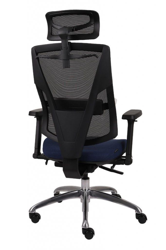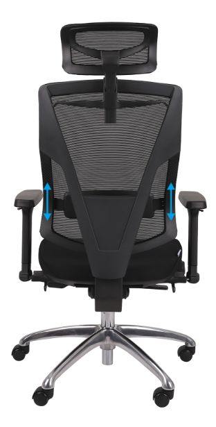 Regulowana (zakres 90mm) wysokość podłokietników 4D pozwala na wygodne i ergonomiczne ułożenie przedramienia (90 stopni względem tułowia), co ogranicza napięcie mięśni pleców podczas długiej pracy w pozycji siedzącej.
